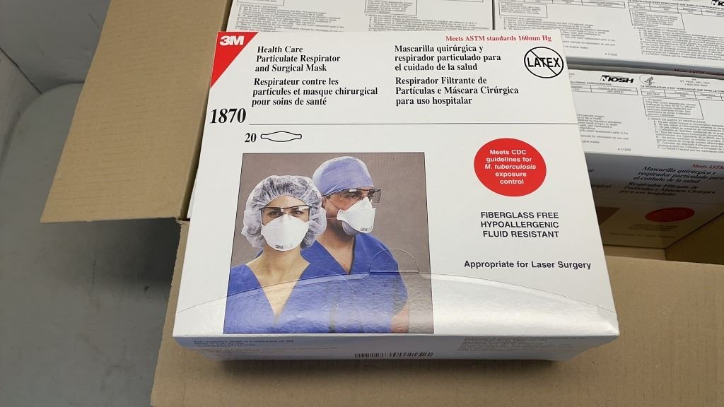 BOX OF NEW 3M 1870 INDIVIDULLAY WRAPPED FILTER MASKS