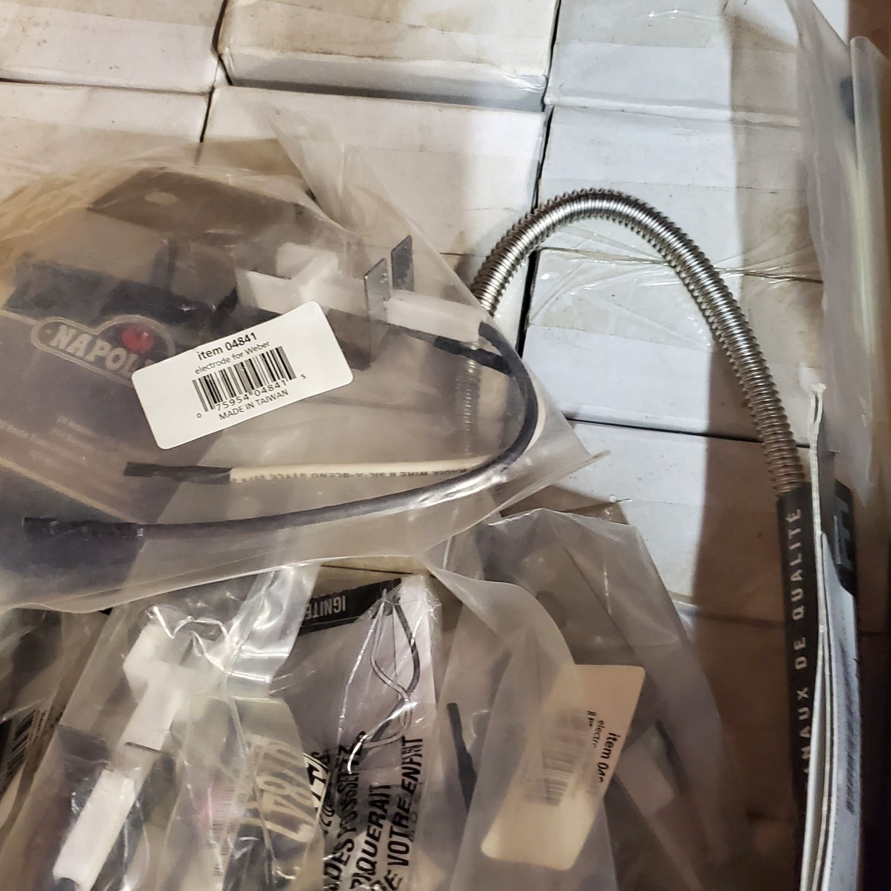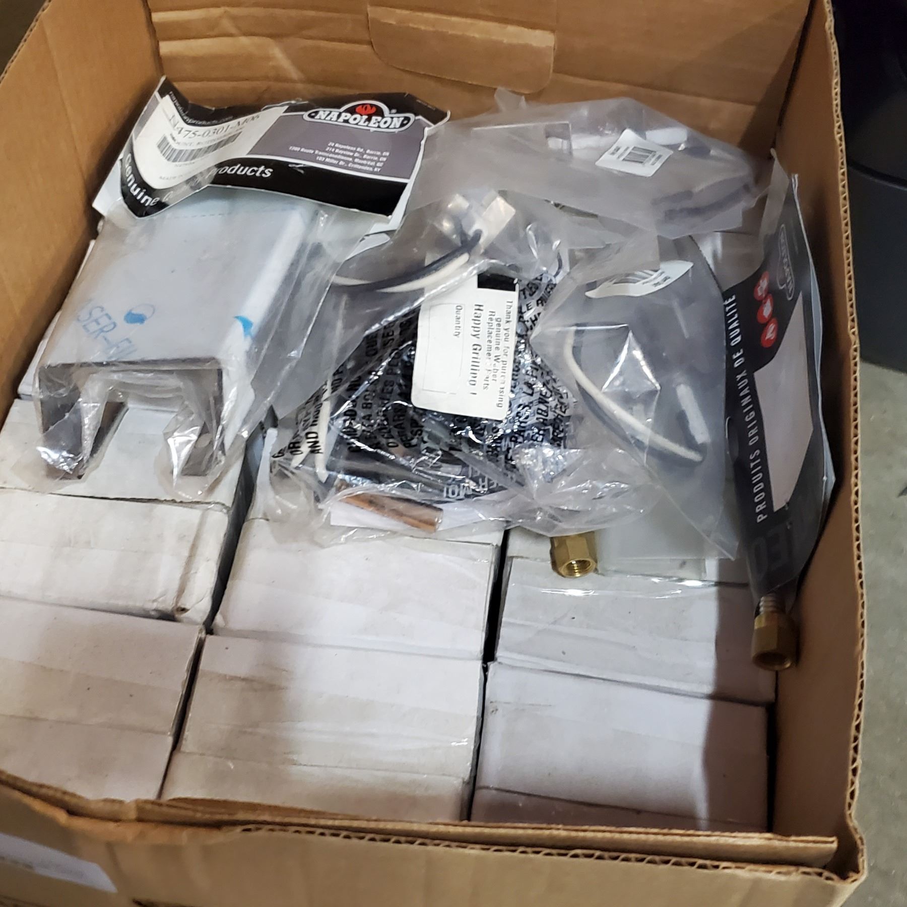 BOX OF NEW BBQ PARTS AND ROTISSERIE SPITS