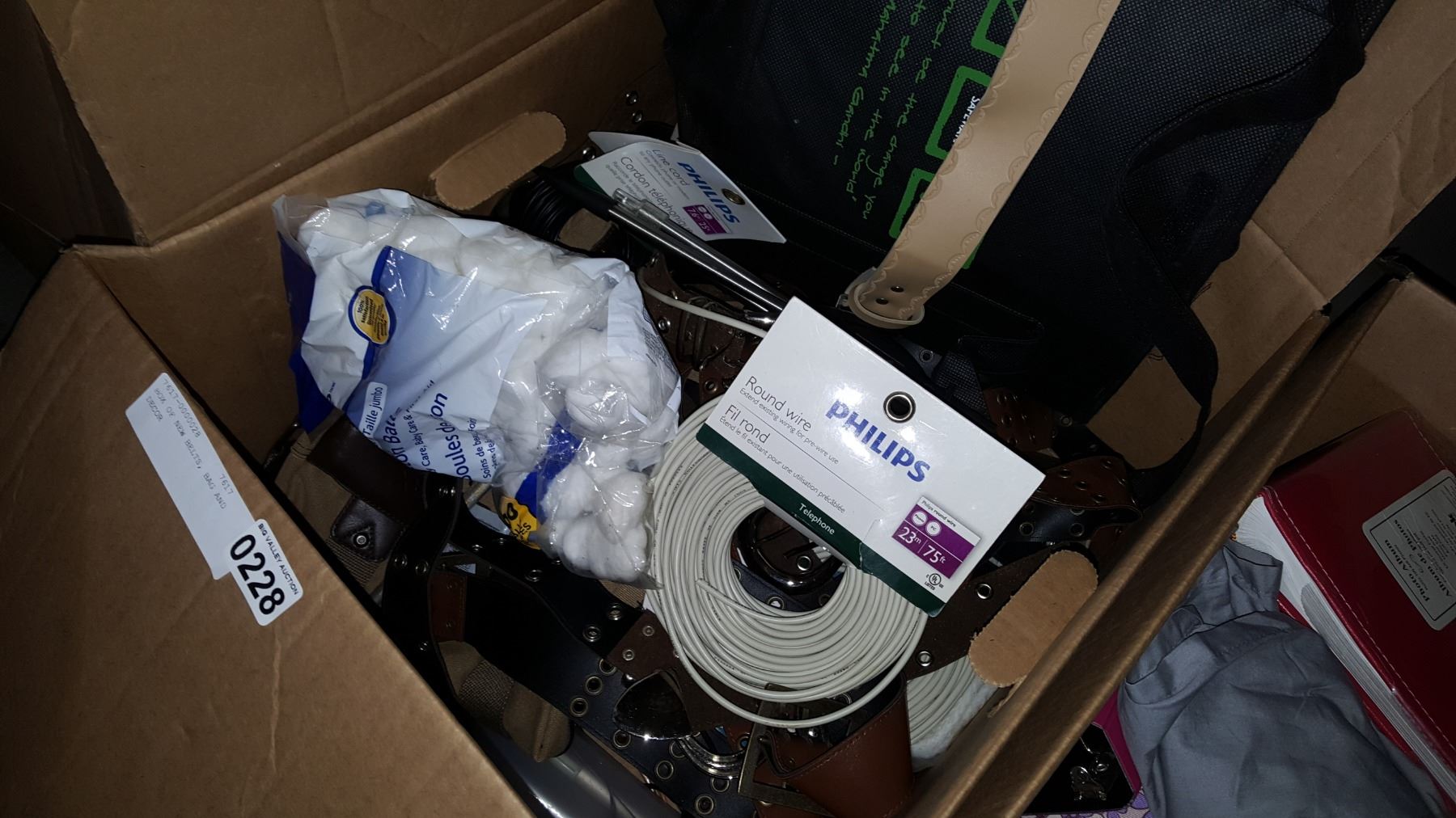 BOX OF NEW BELTS, BAG AND DECOR