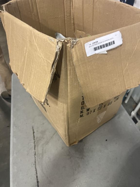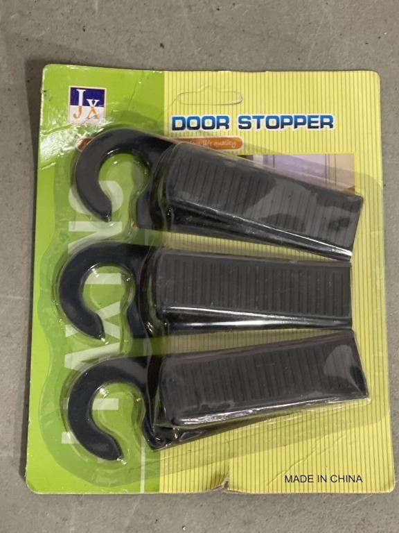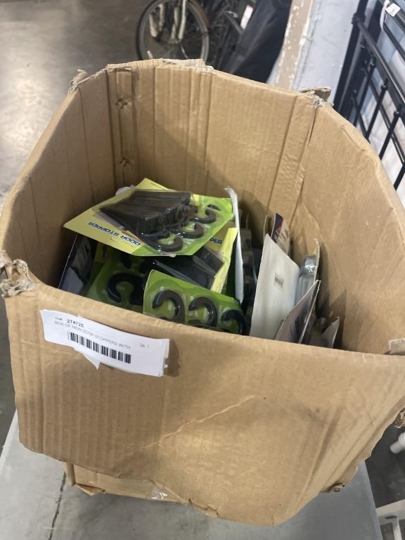 BOX OF NEW DOOR STOPPERS WITH STAGING HOOKS
