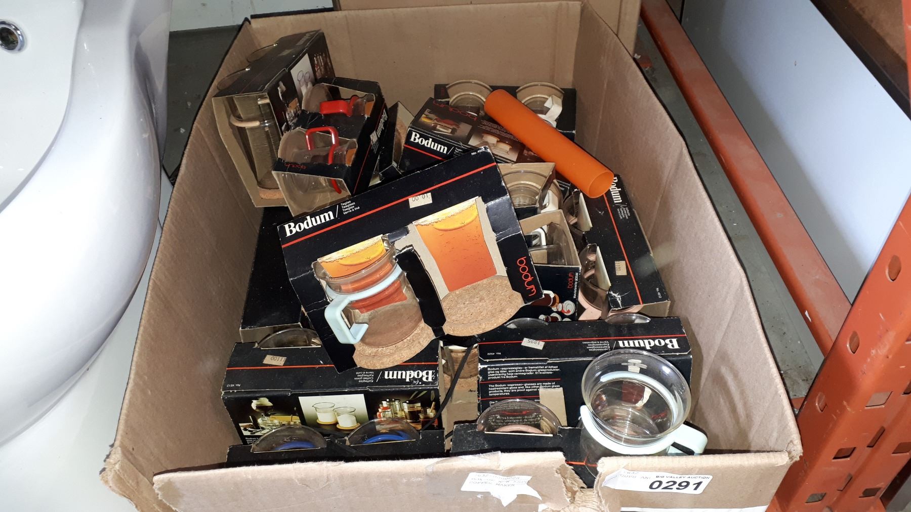 BOX OF NEW ESPRESSO CUPS AND COFFEE MAKER