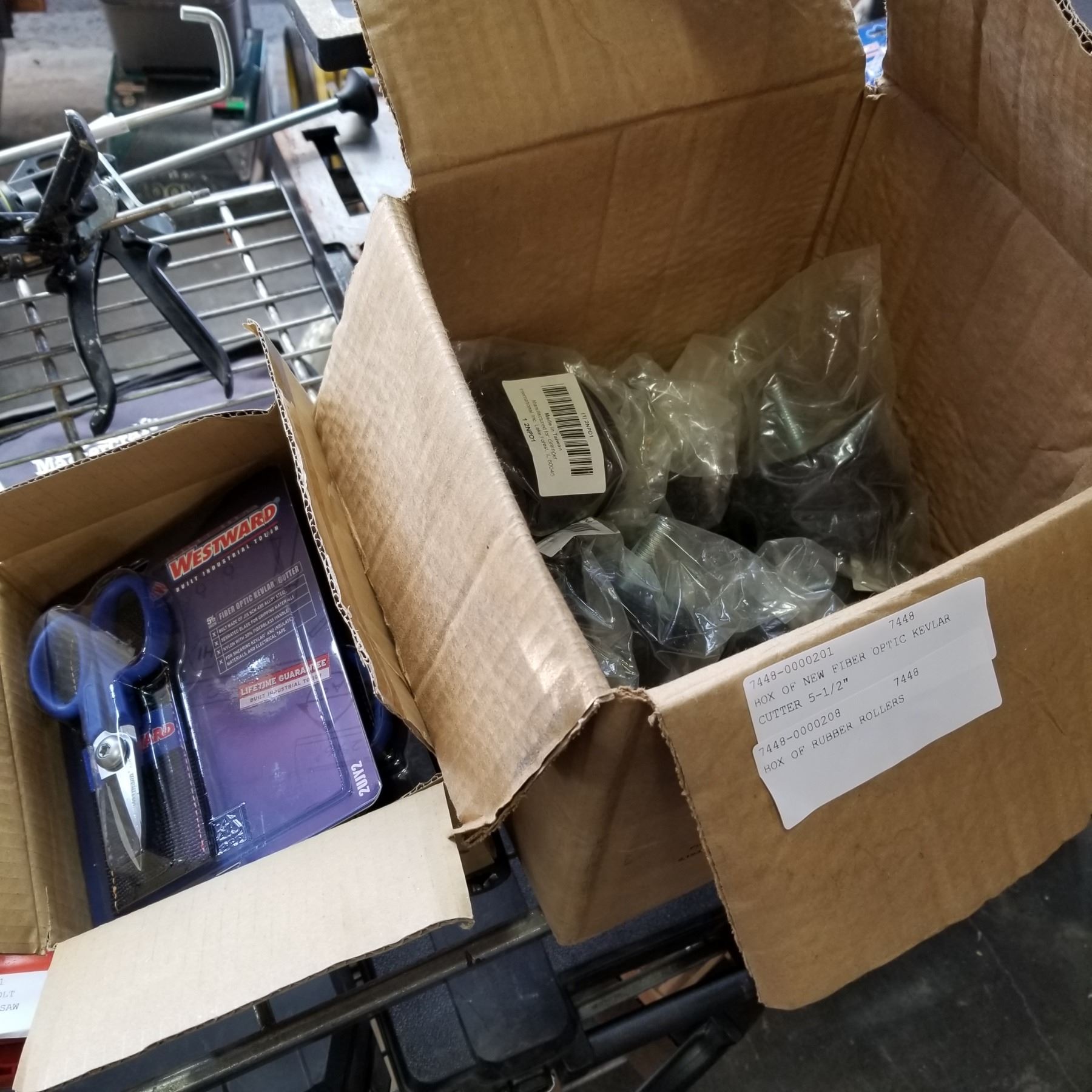 BOX OF NEW FIBER OPTIC KEVLAR CUTTER 5-1/2" AND BOX OF RUBBER ROLLERS