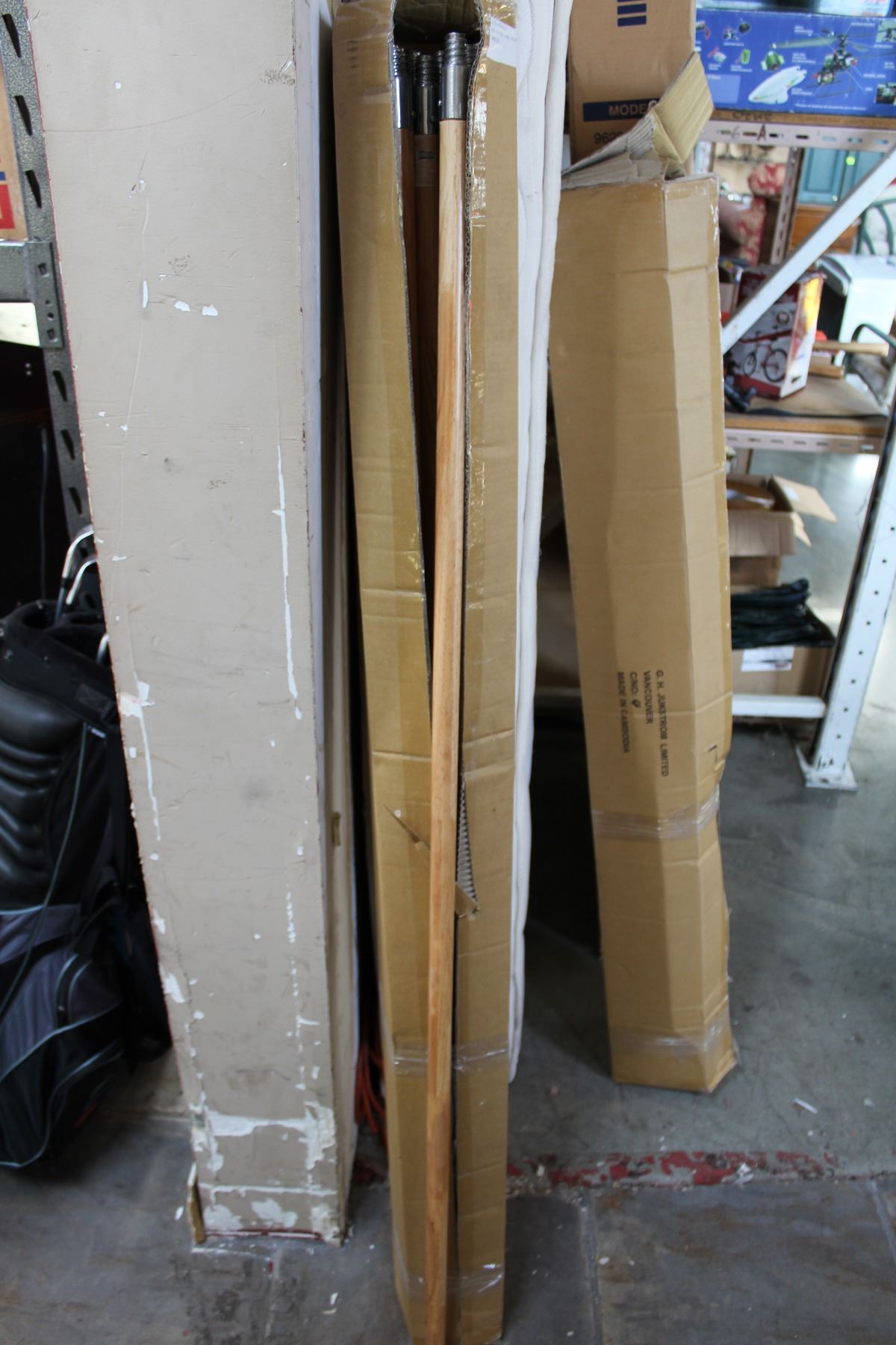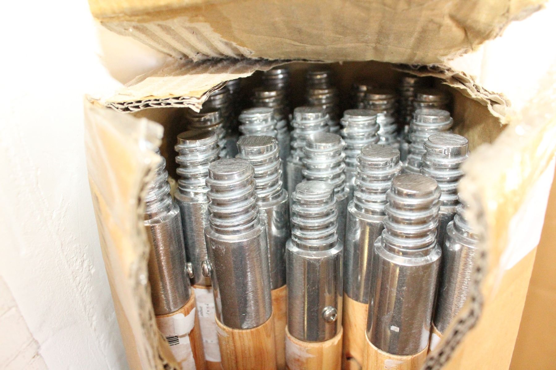 BOX OF NEW FIVE FOOT SCREW END HANDLES