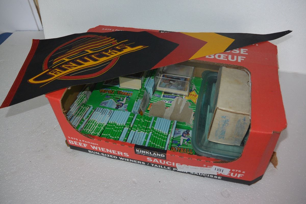 BOX OF NEW FOOTBALL AND HOCKEY CARDS