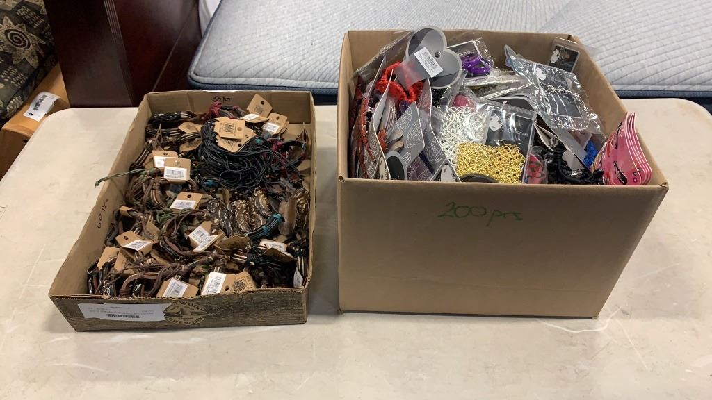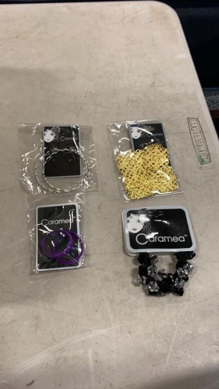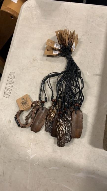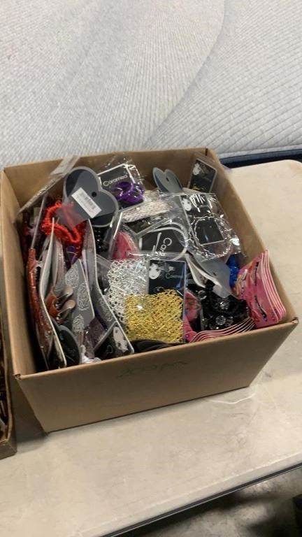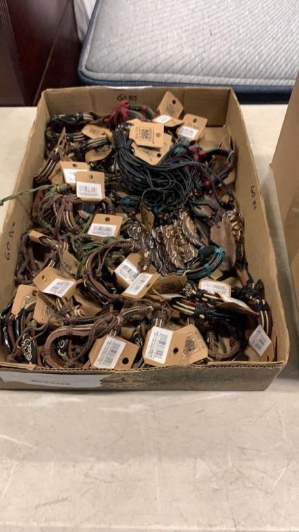 BOX OF NEW HAIR ACCESSORIES WITH LEATHER NECKLACES AND BRACELETS