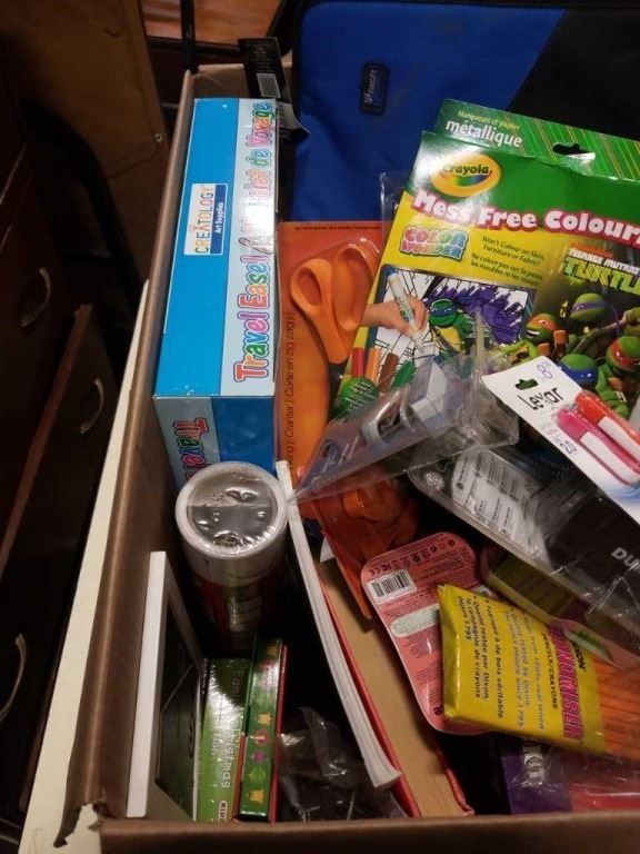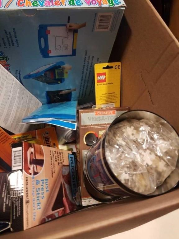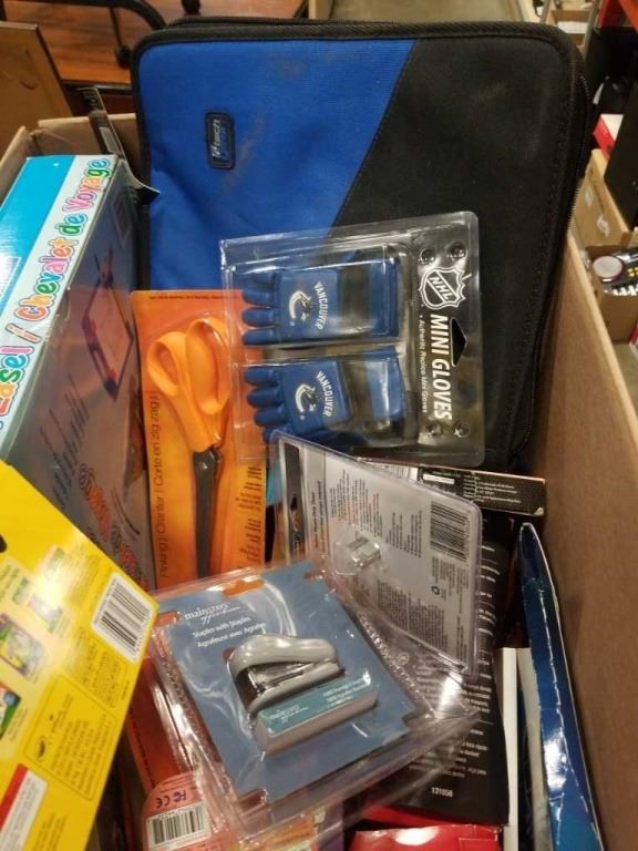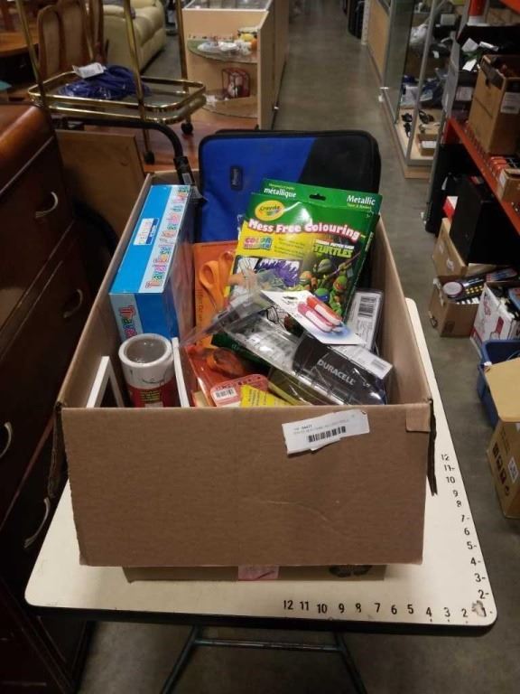 BOX OF NEW ITEMS, INCLUDES TOOLS, SCISSORS, INDOOR HEAVY DUTY TIMER, EASEL