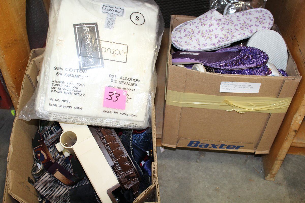 BOX OF NEW LA VIE ROSE AND OTHER SLIPPERS LADIES SHIRTS AND MENS TIES
