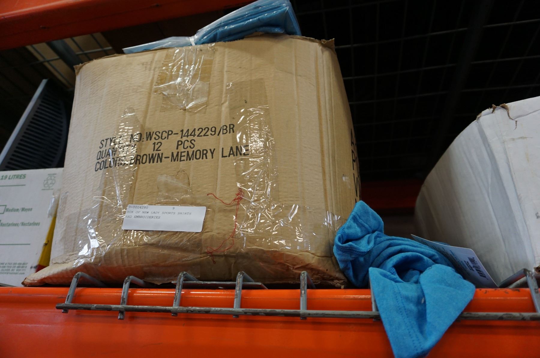 BOX OF NEW LADY SPORTS SHIRTS AND EMBROIDERIES