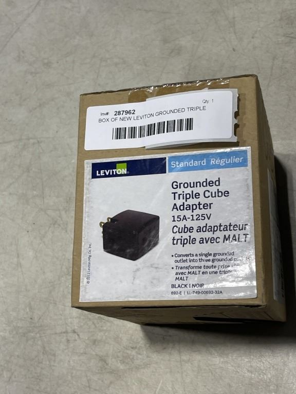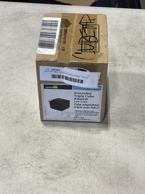 BOX OF NEW LEVITON GROUNDED TRIPLE CUBE ADAPTERS