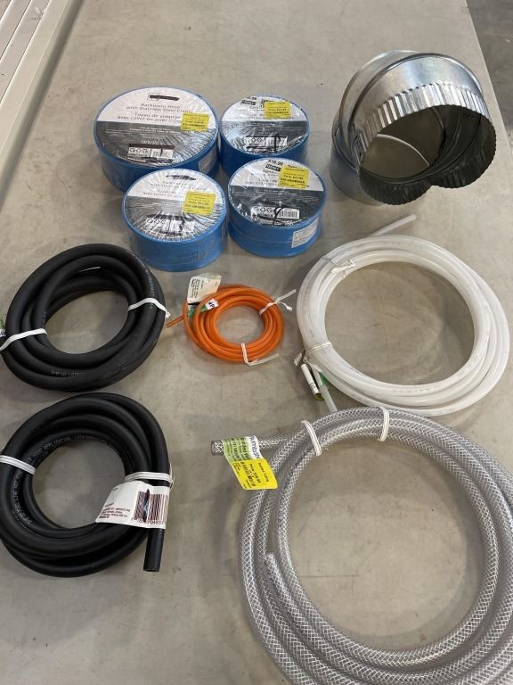 BOX OF NEW OUTFLOW HOSE, WATER LINE AND MORE