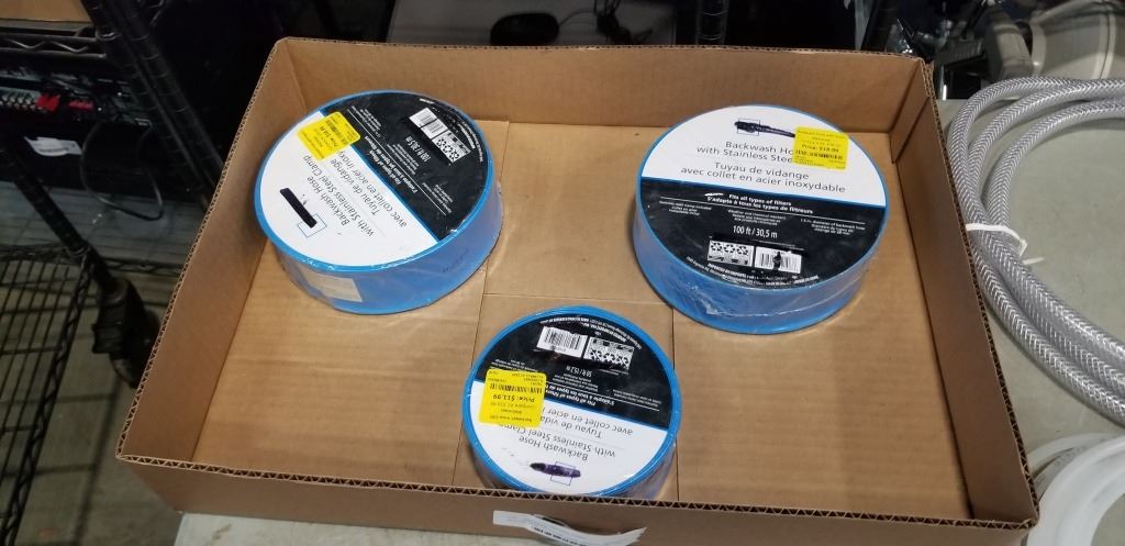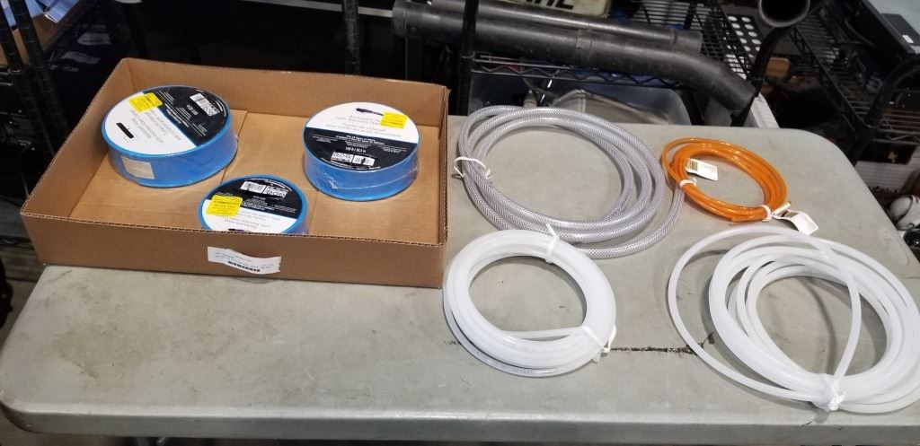 BOX OF NEW OUTFLOW HOSE, WATER LINE AND MORE