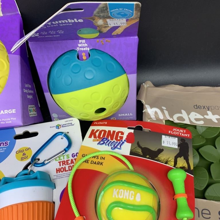 BOX OF NEW PET ACCESSORIES AND TOYS