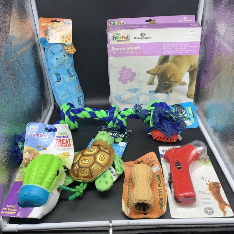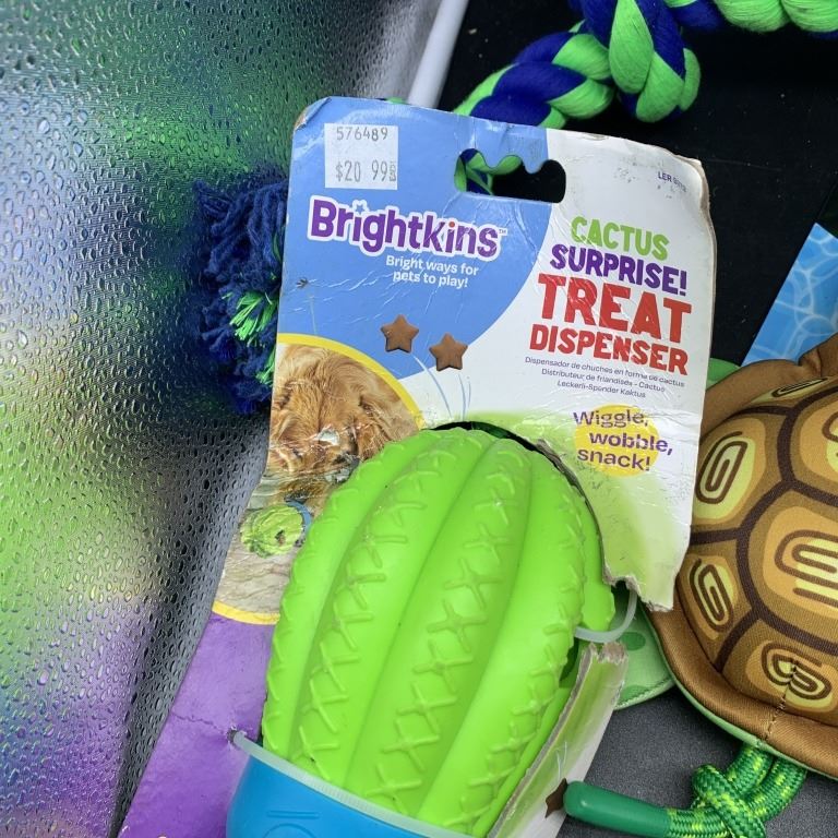 BOX OF NEW PET ACCESSORIES AND TOYS