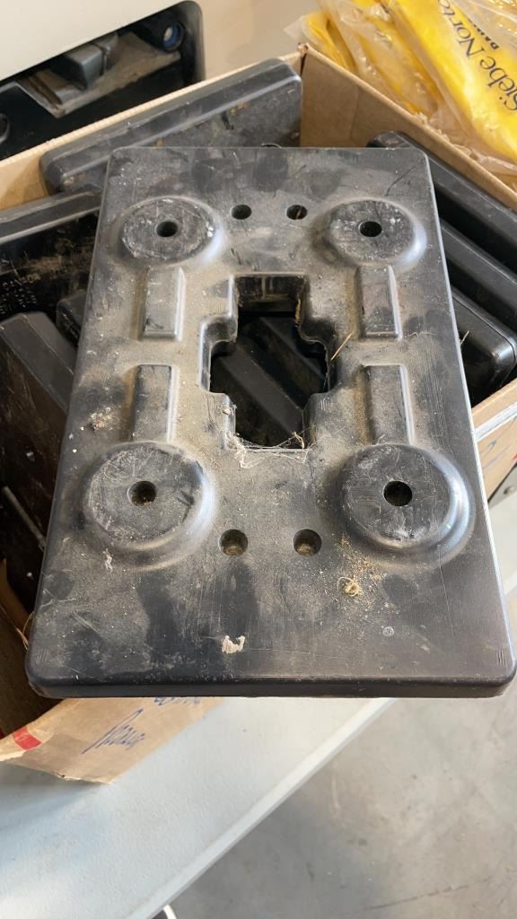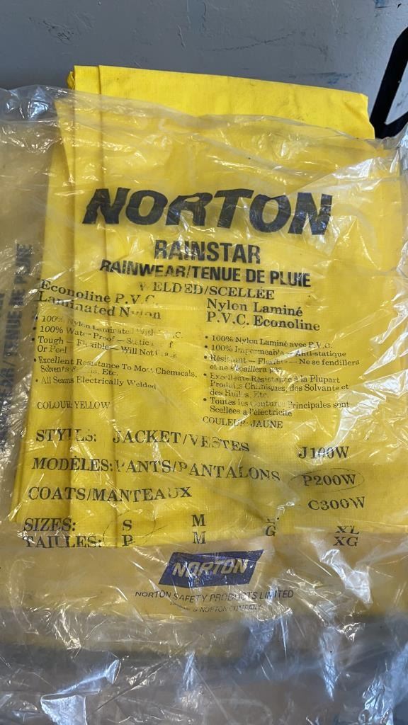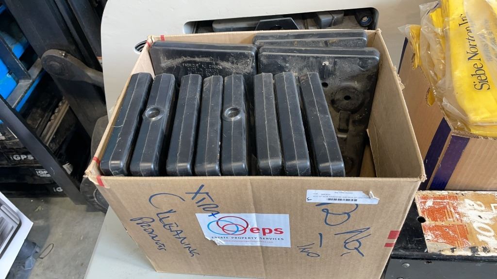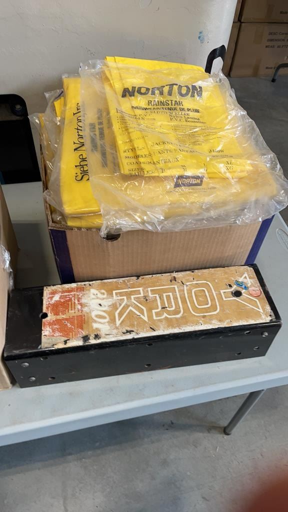 BOX OF NEW RAINGEAR AND BOX OF LEG PRESS WEIGHTS