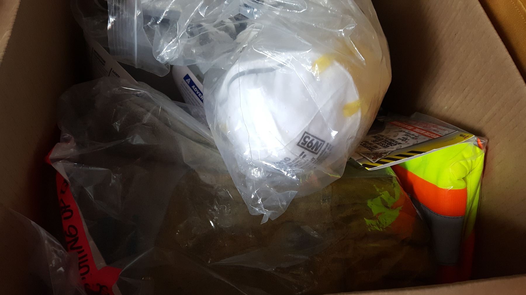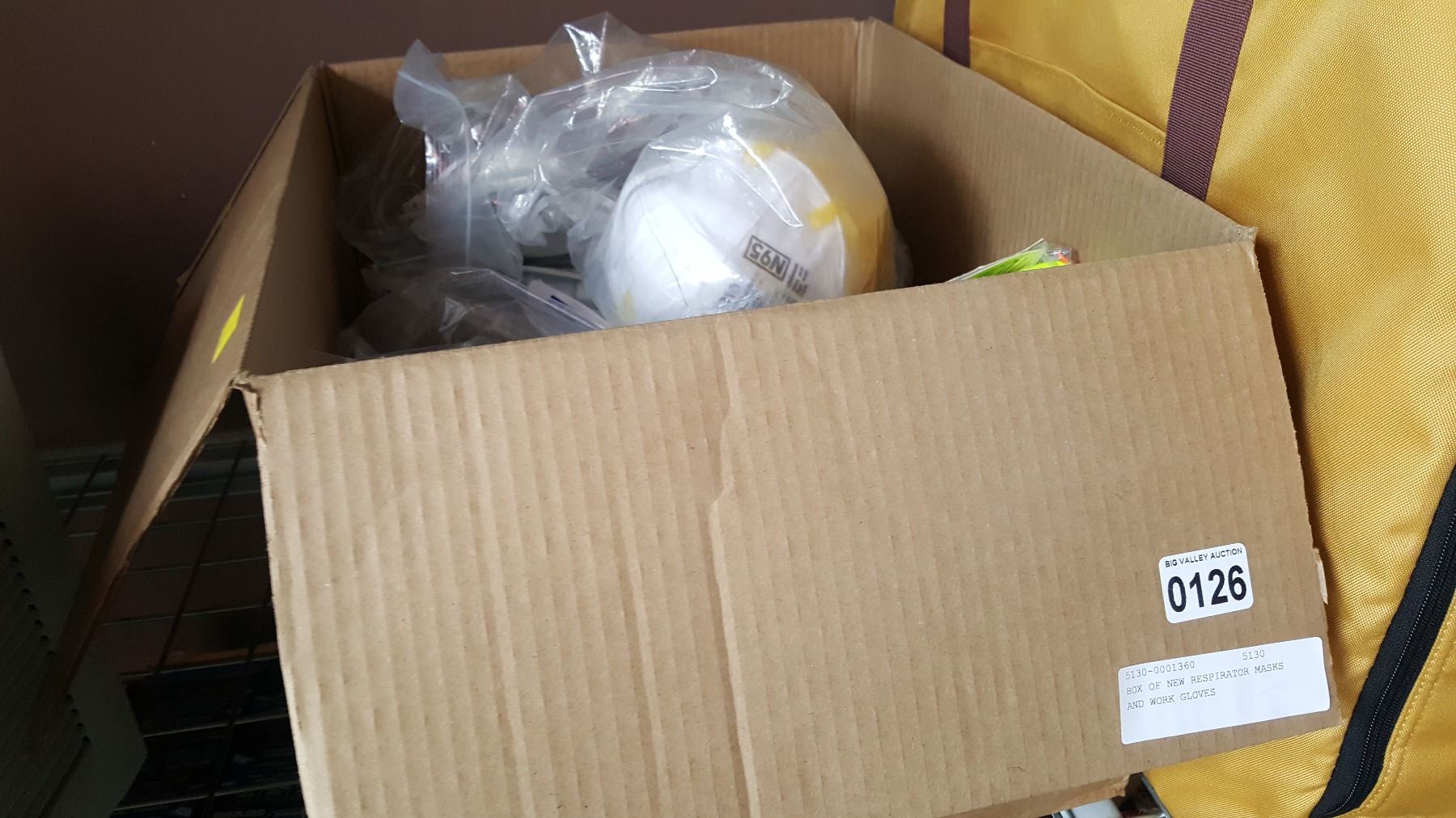 BOX OF NEW RESPIRATOR MASKS AND WORK GLOVES