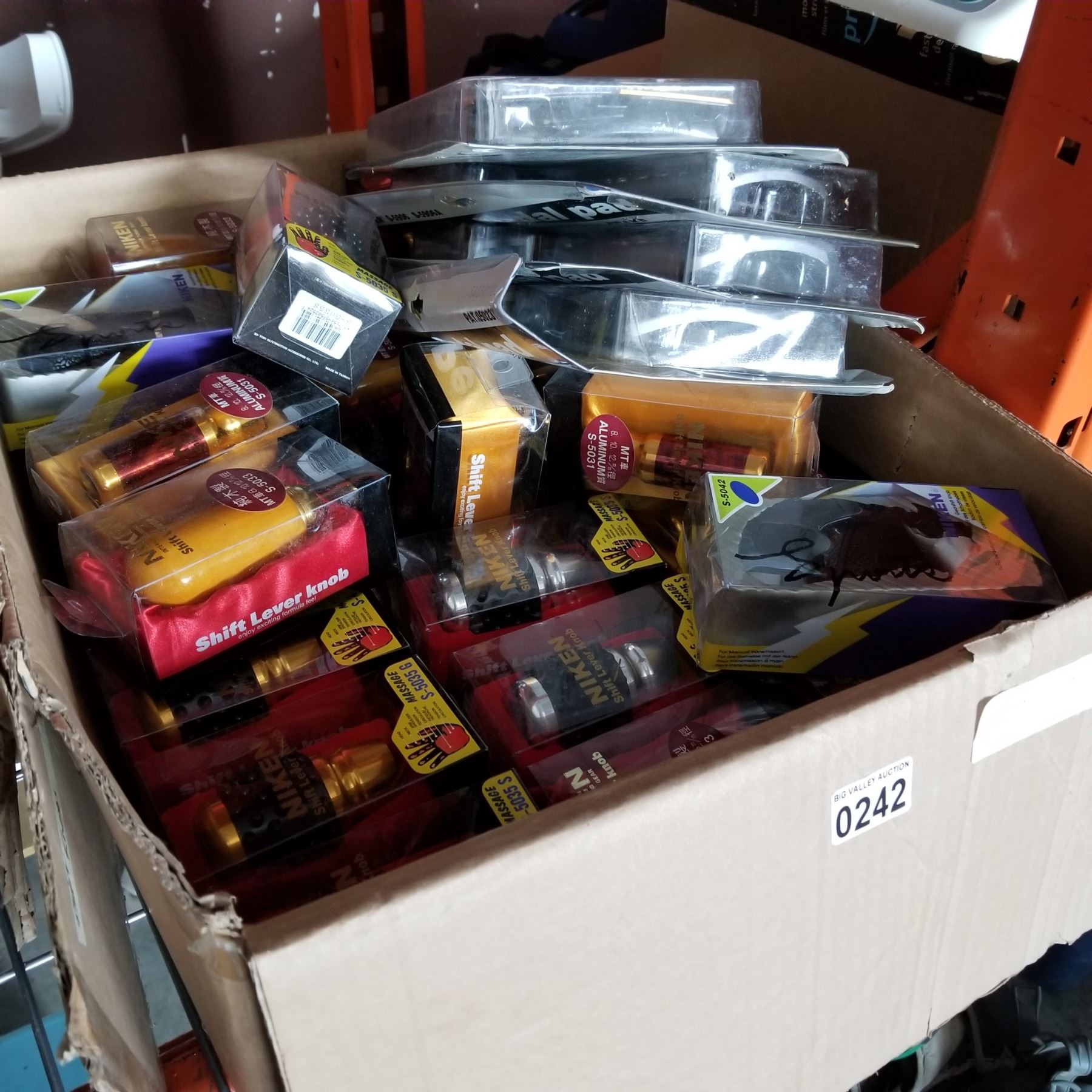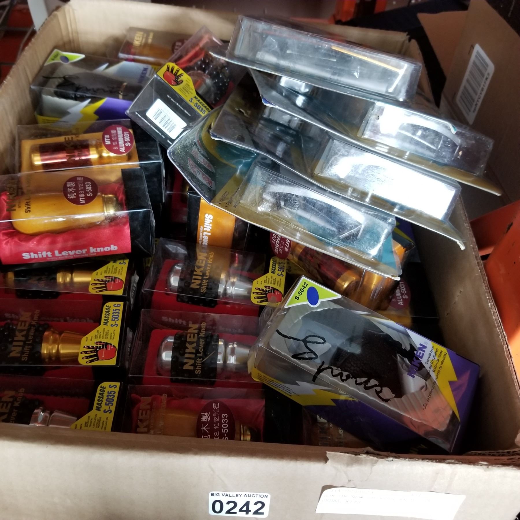 BOX OF NEW SHIFTER KNOBS AND PEDAL KITS