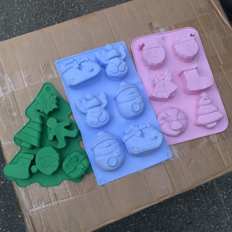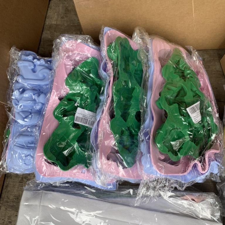 BOX OF NEW SILICONE BAKING MOLDS, GLITTER POINSETTIAS AND EASTER SETS