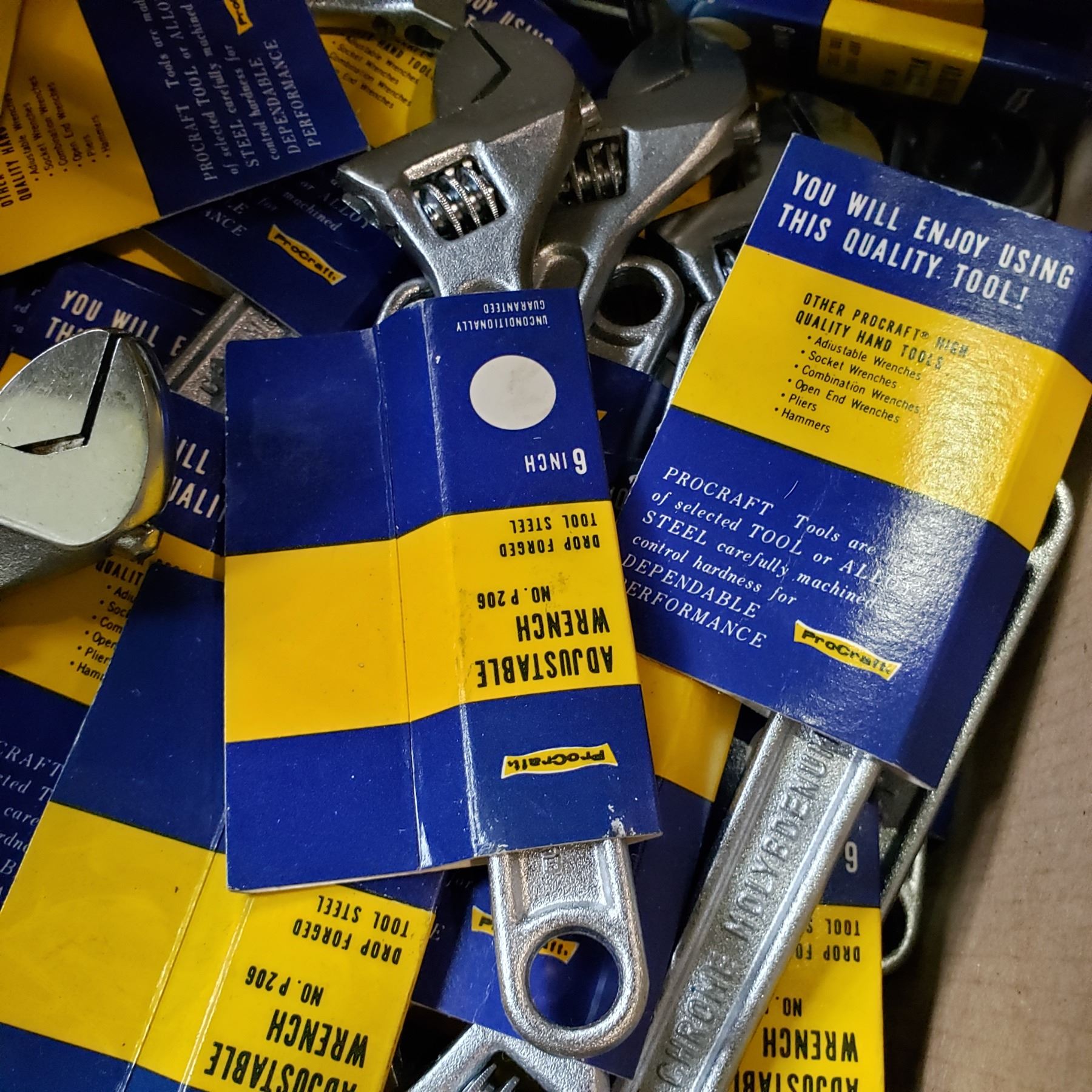 BOX OF NEW TOOLS IN PLASTIC TRAY