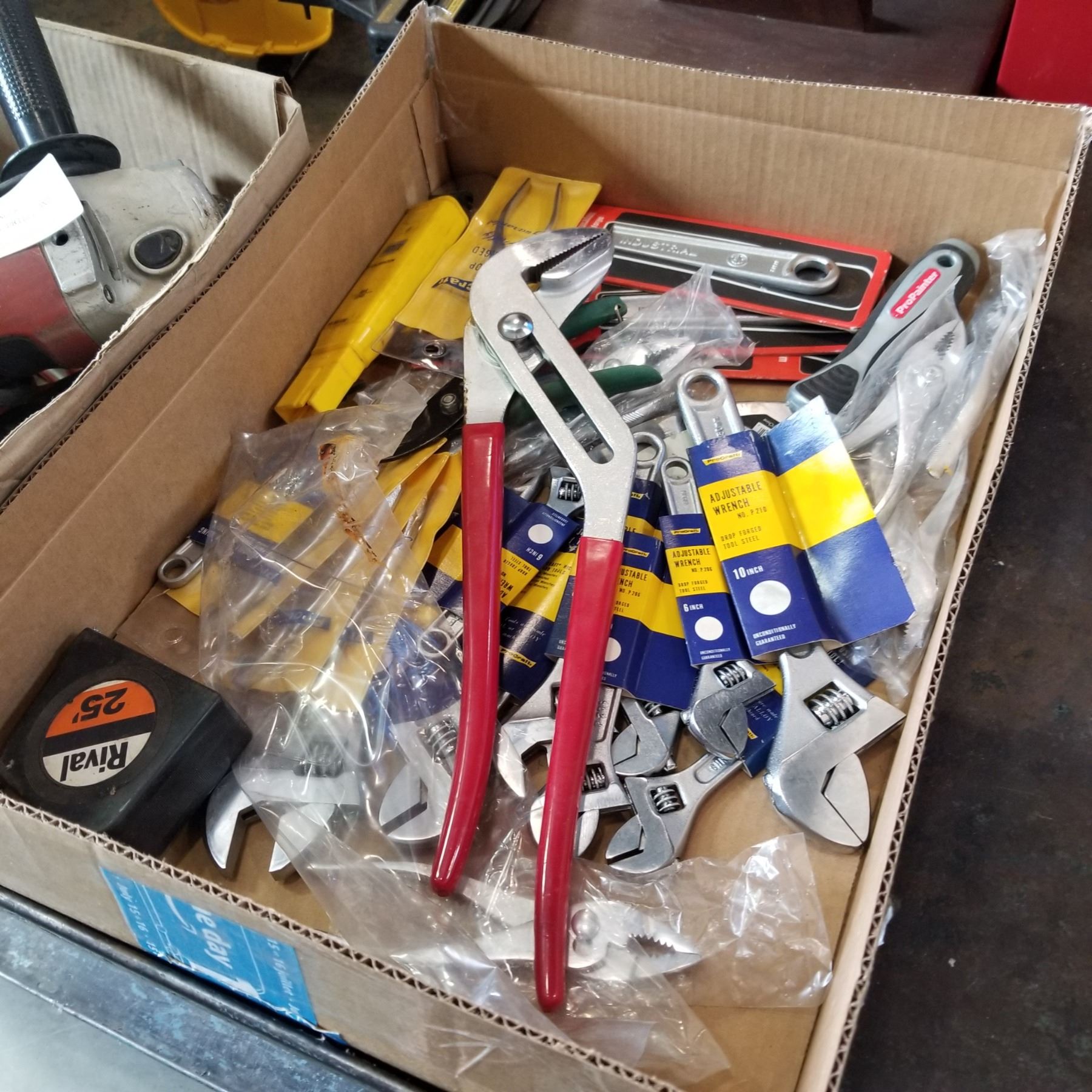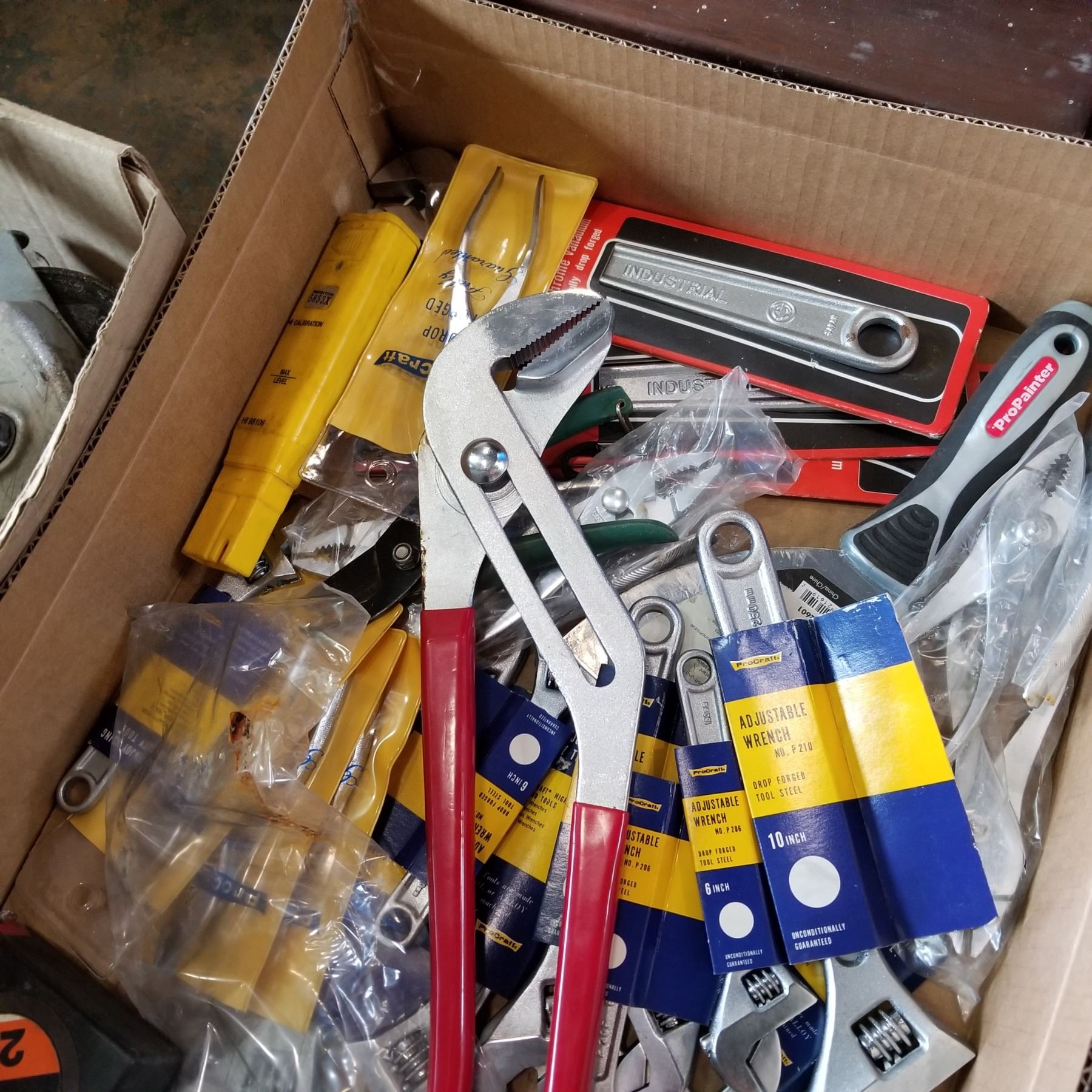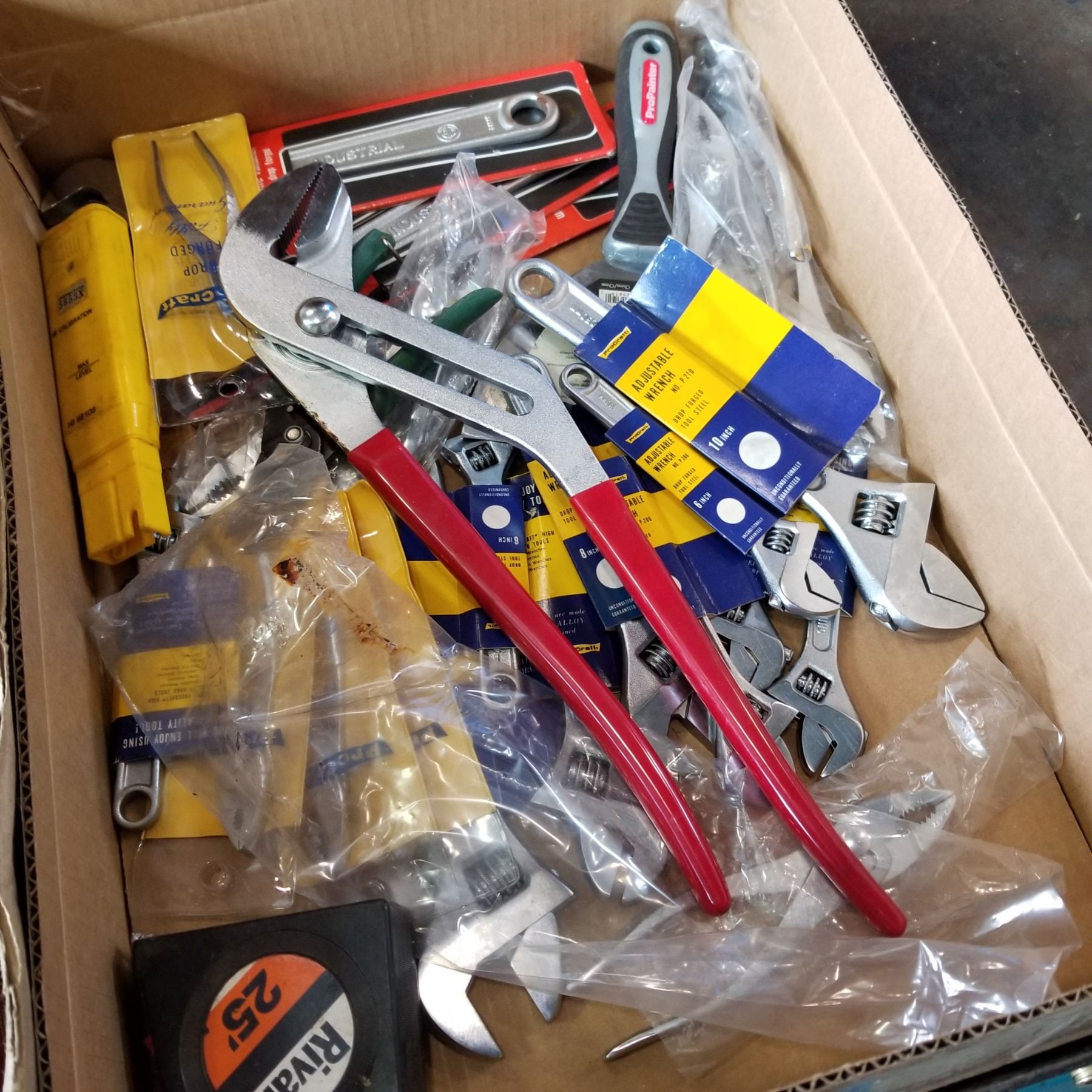BOX OF NEW TOOLS - MOSTLY WRENCHES