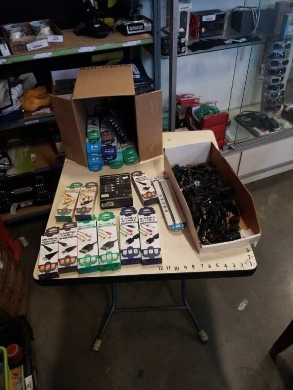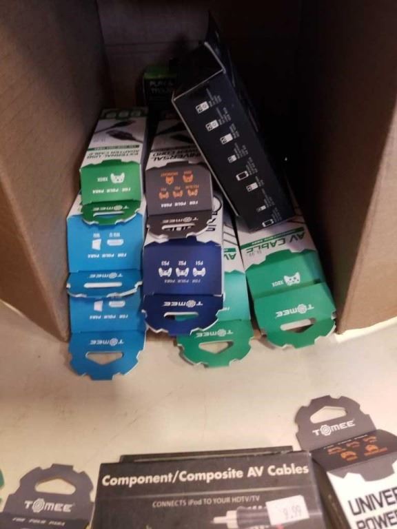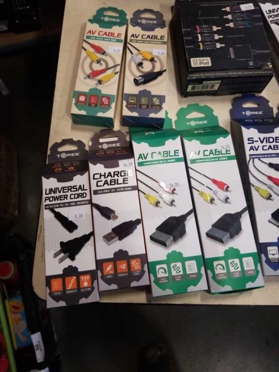 BOX OF NEW VIDEOGAME CONSOLE CABLES - WII WIIU, XBOX, PS1/2/3, SEGA GENESIS, NES, POWER CABLES