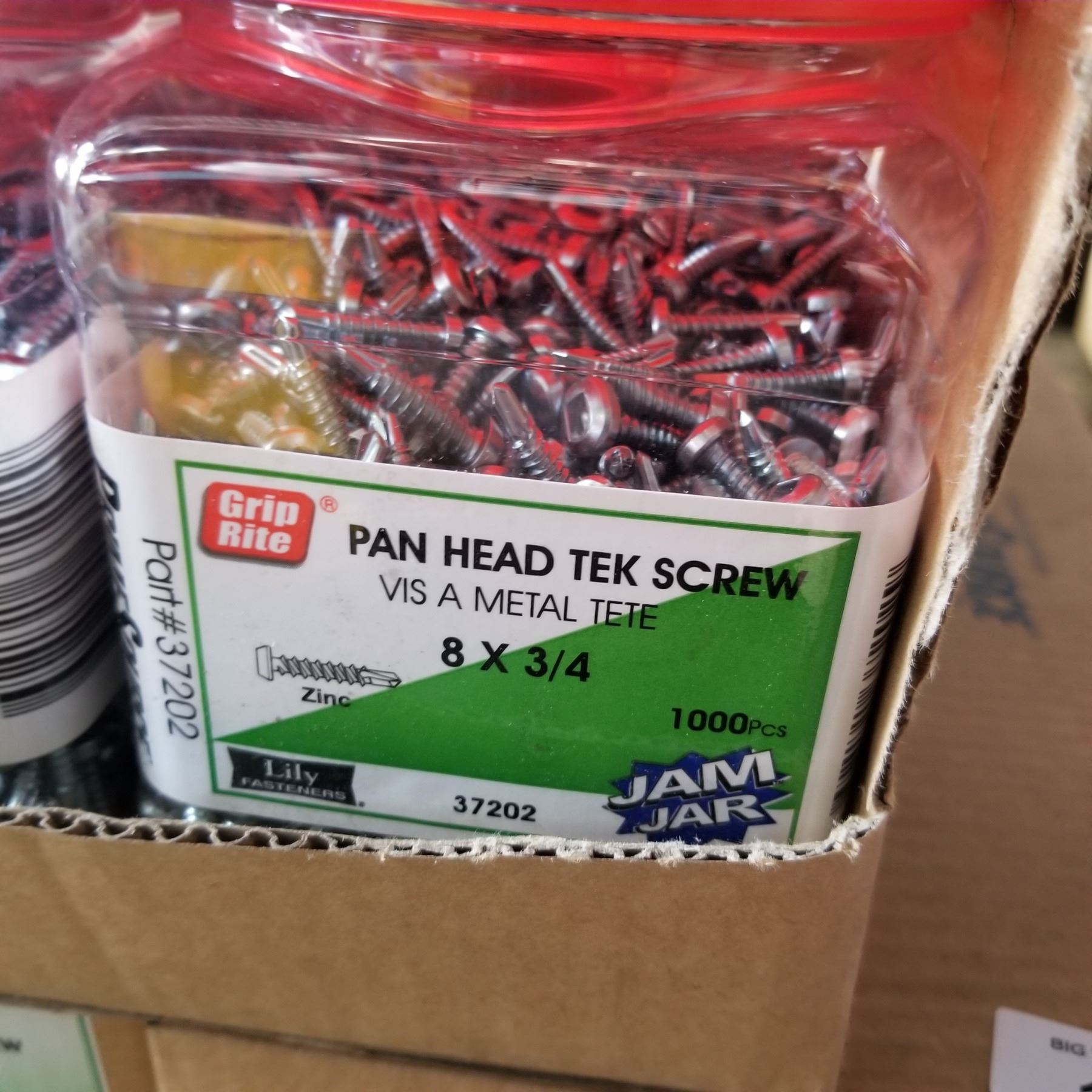 BOX OF NUMBER 8 3/4" PAN HEAD TEK SCREW 8000CT