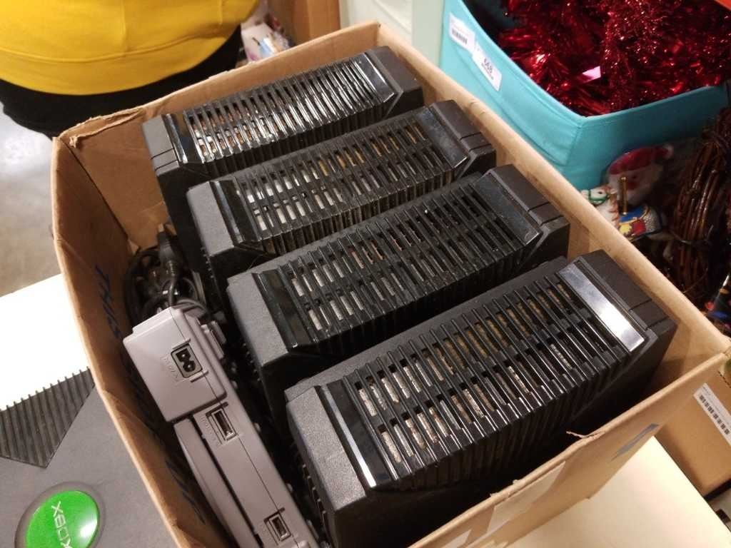 BOX OF ORIGINAL XBOX CONSOLES AND PLAYSTATION