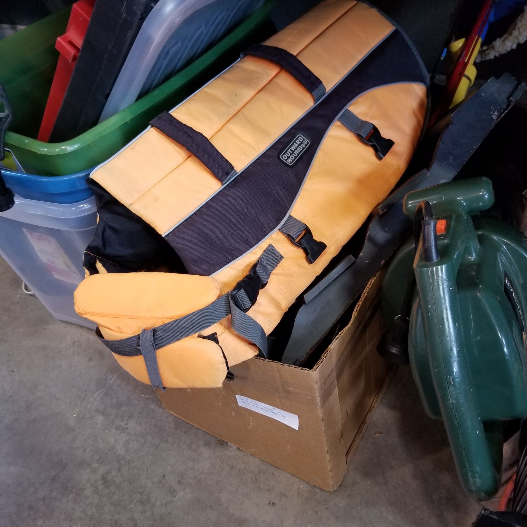 BOX OF OUTWARD HOUND LIFE JACKET, STAR WARS TRUCK, ETC