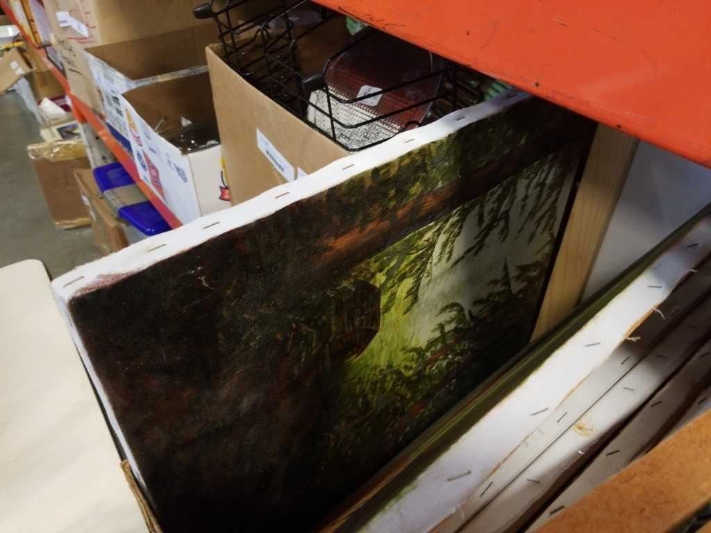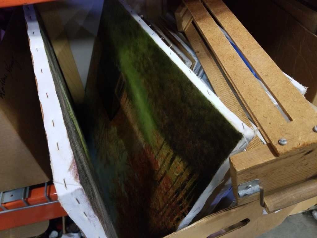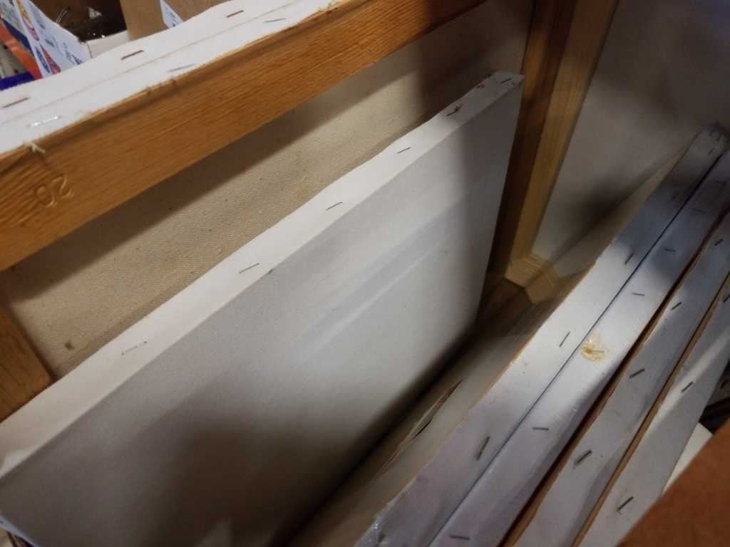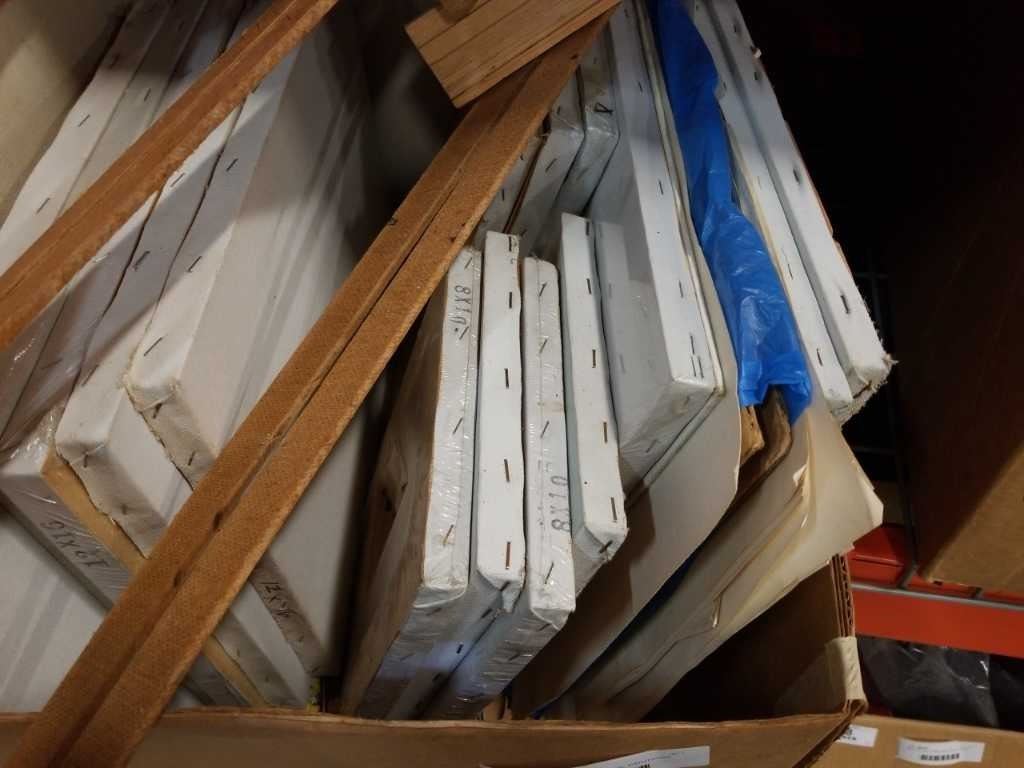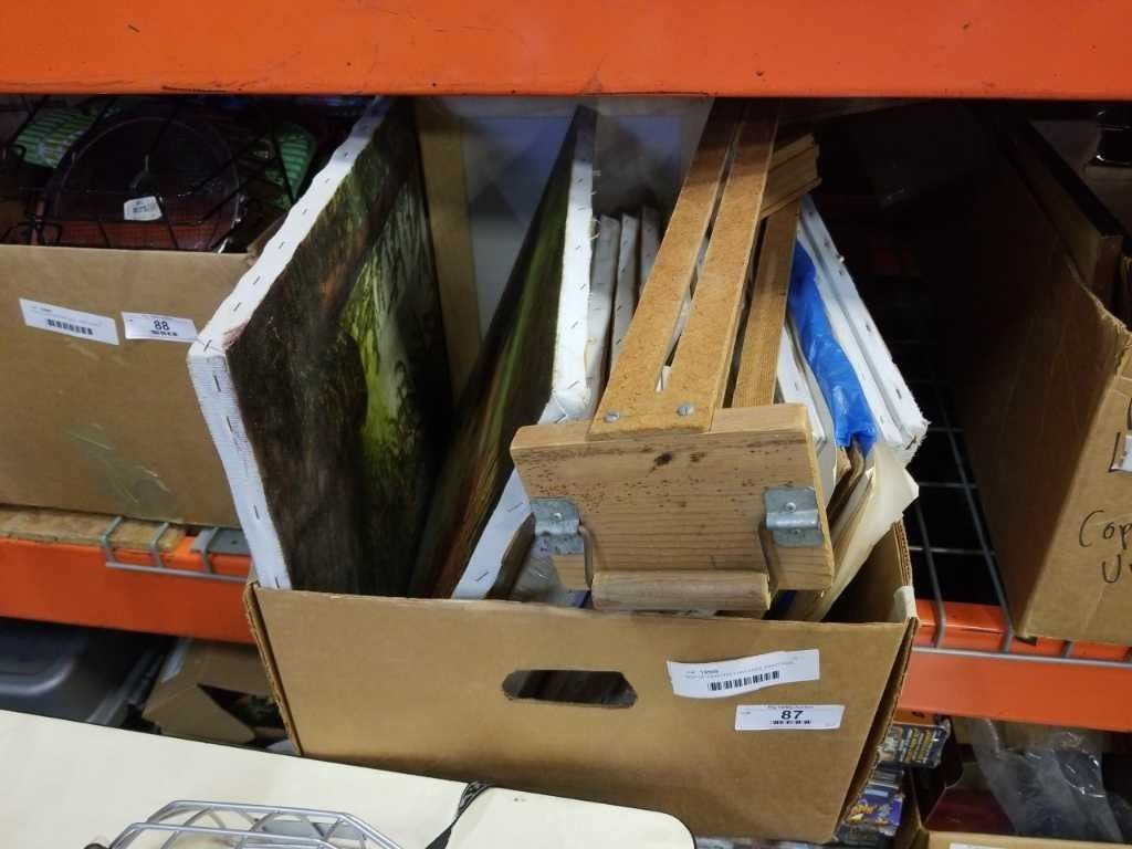 BOX OF PAINTING CANVASES, PAINTINGS, SMALL EASEL