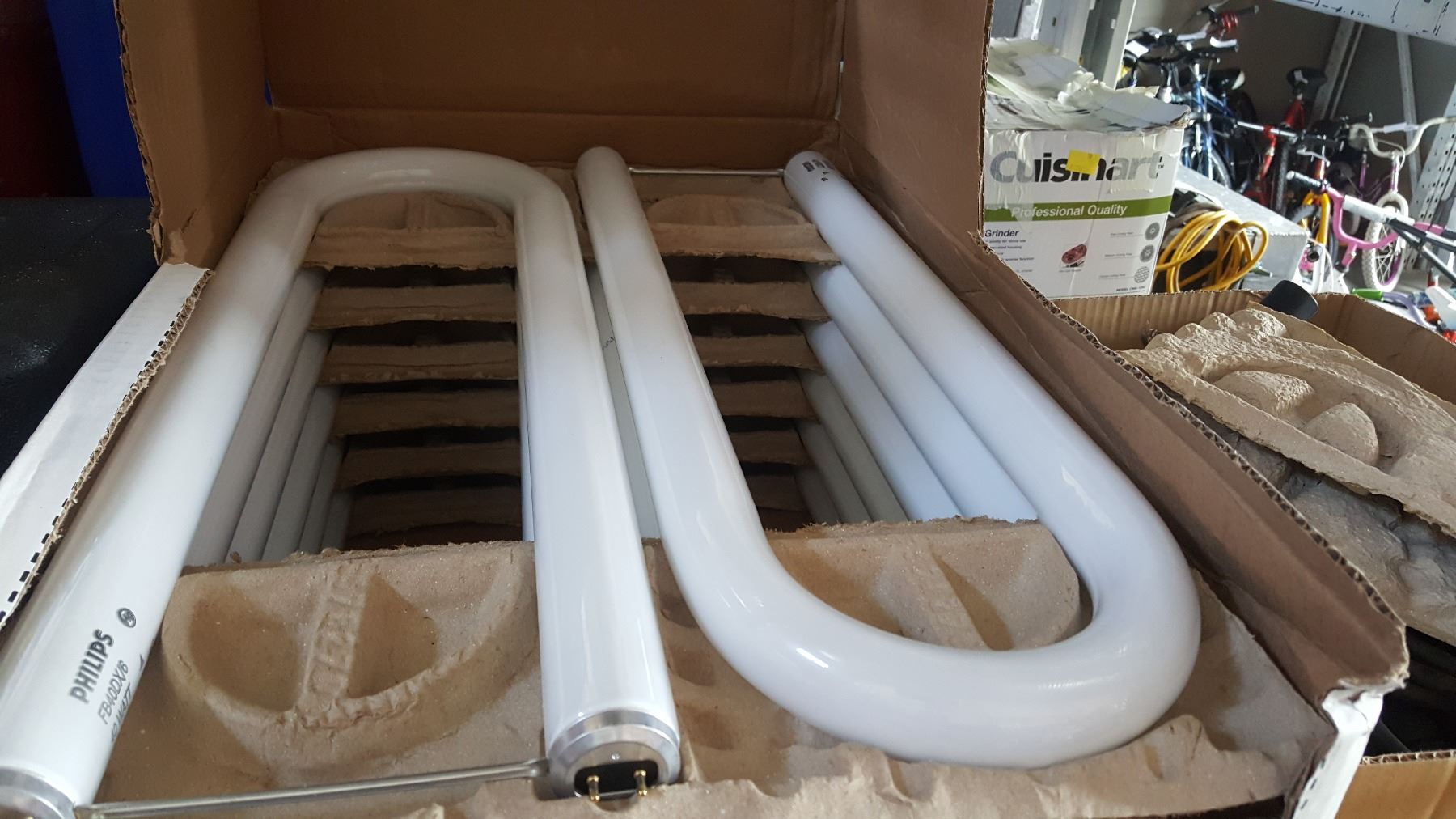 BOX OF PHILLIPS DAYLIGHT DELUXE U BENT FLUORESCENT LIGHT TUBES