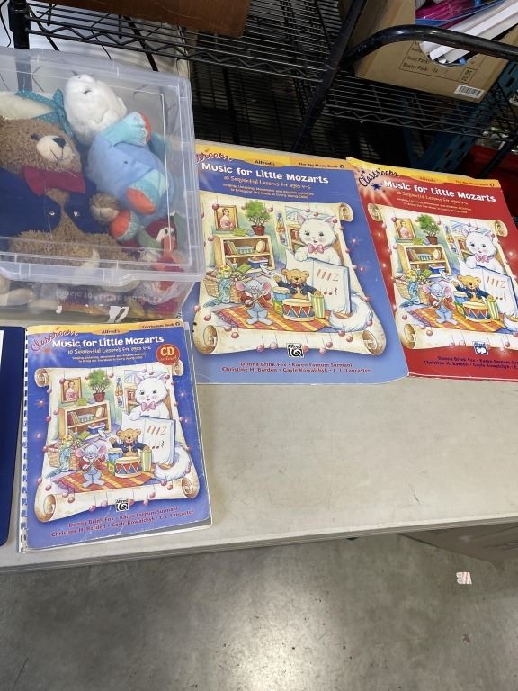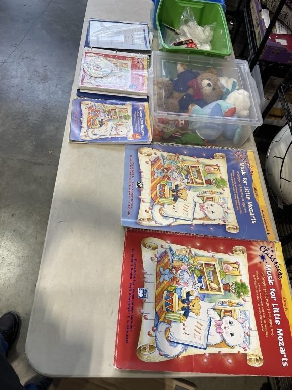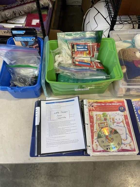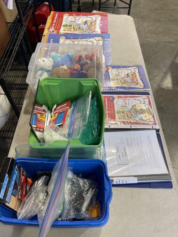 BOX OF PICTURE HANGING SUPPLIES, MUSIC BOOKS, VELCRO AND MORE
