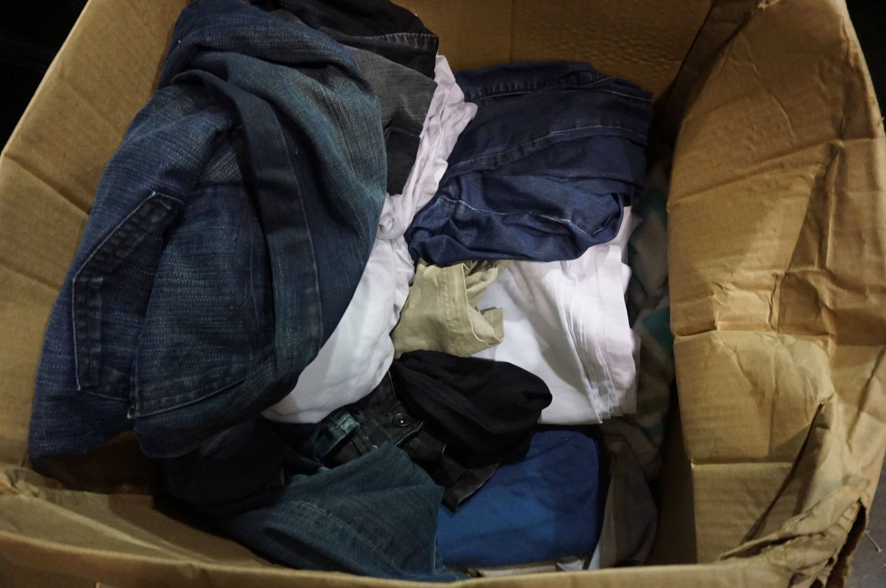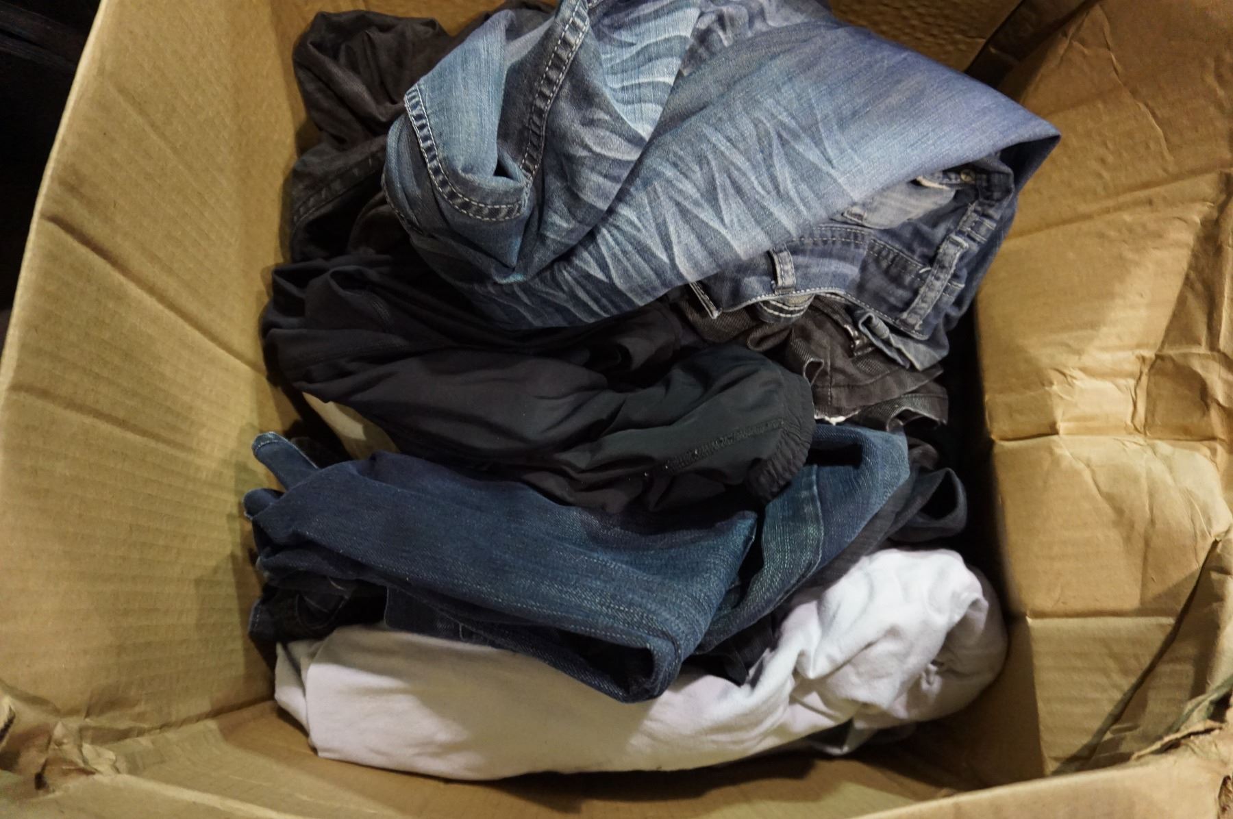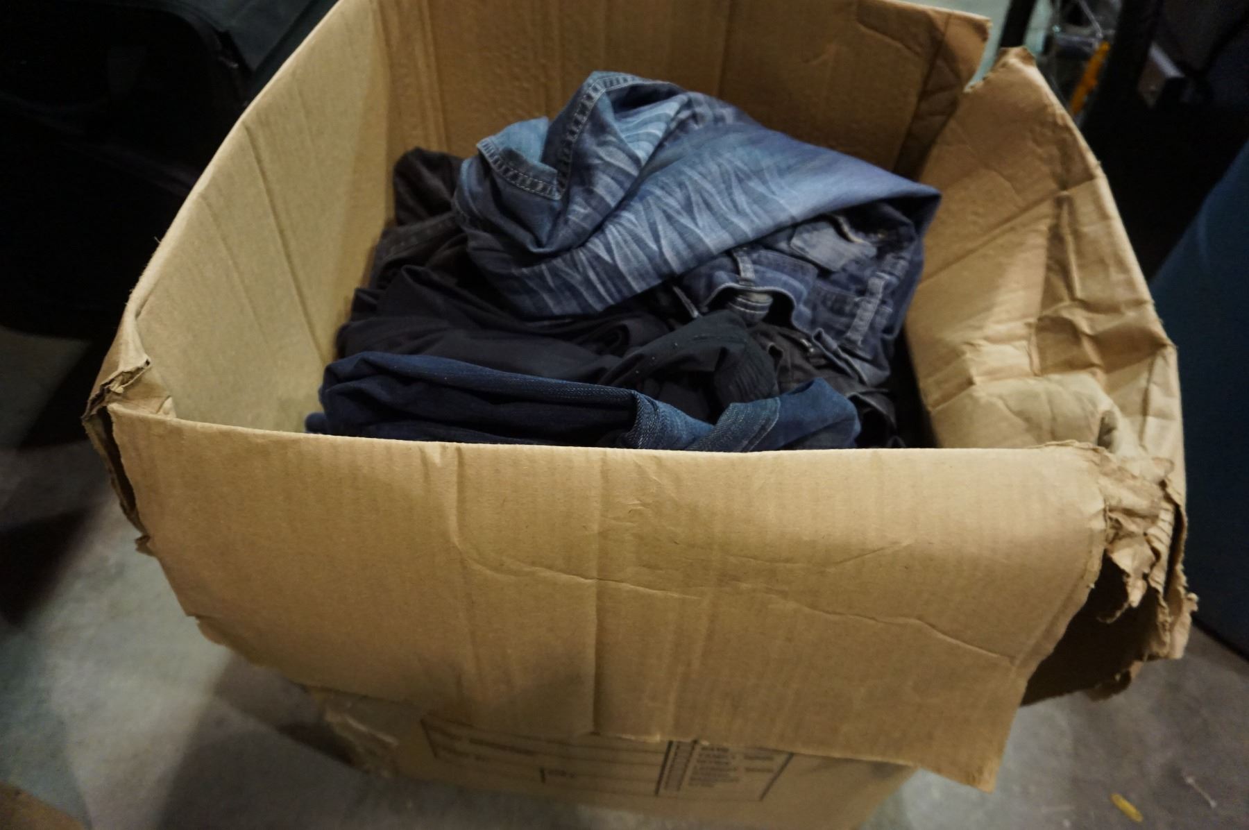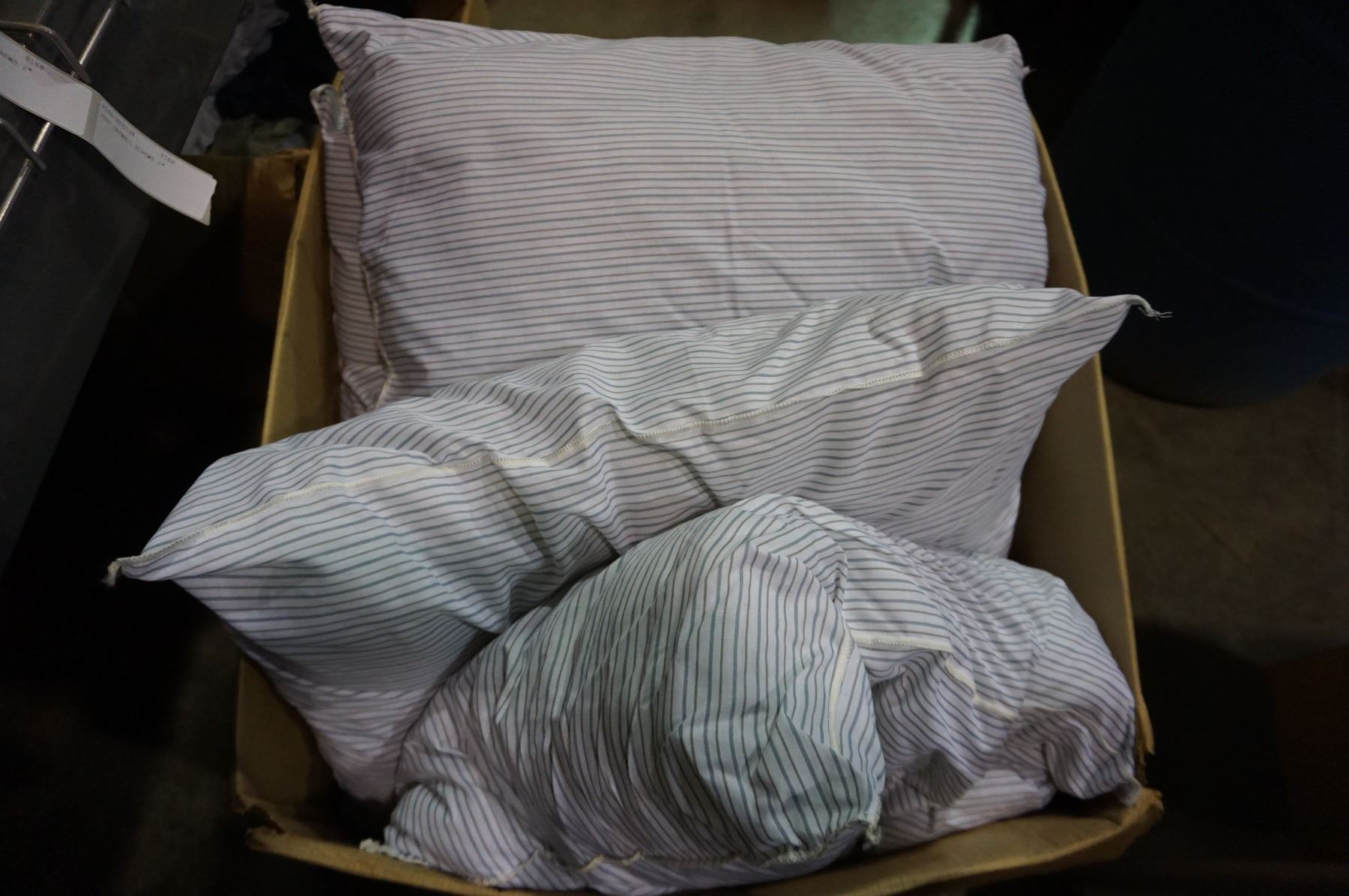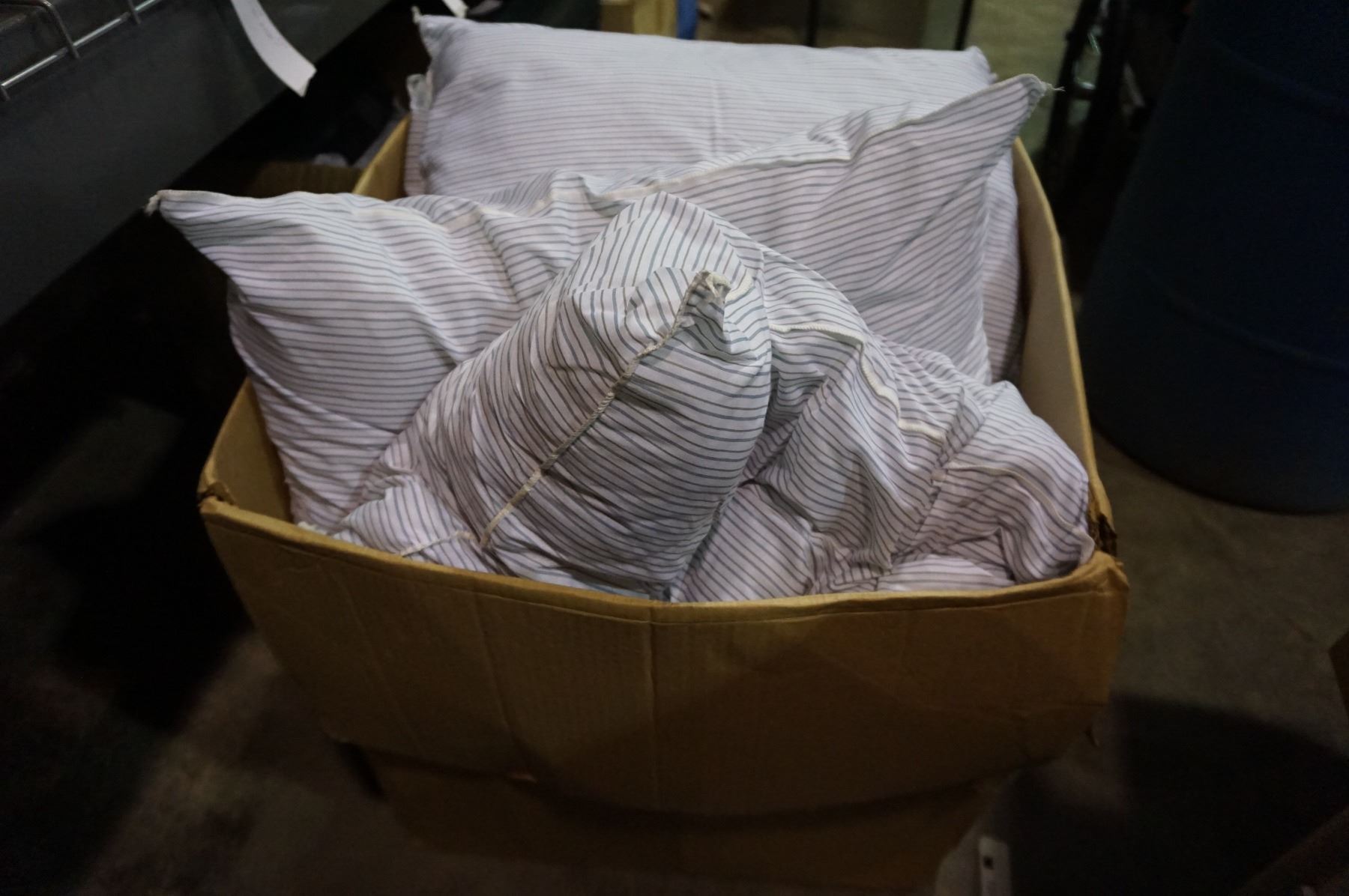 BOX OF PILLOWS AND BOX OF JEANS, BED SHEETS, AND TOWELS