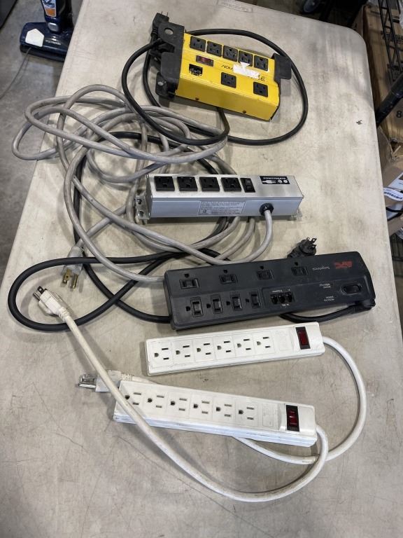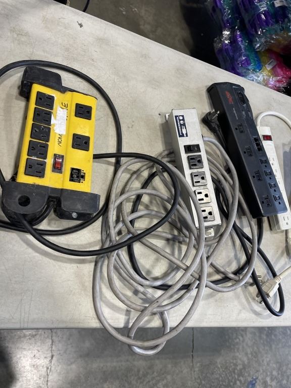 BOX OF POWER CORDS AND POWER BARS