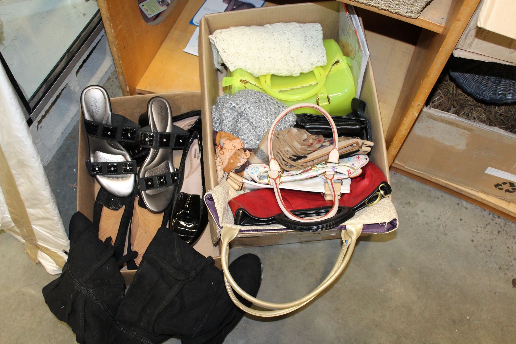 BOX OF PURSES AND BOX OF SHOES