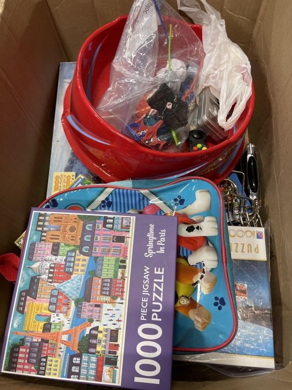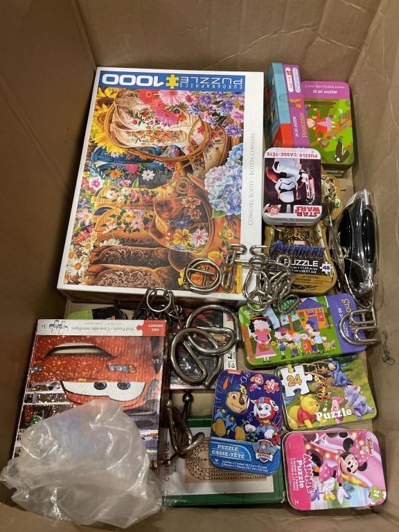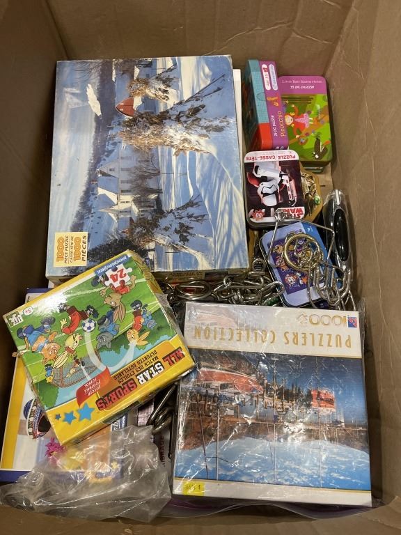 BOX OF PUZZLES, IQ GAMES, NERF TOYS ETC