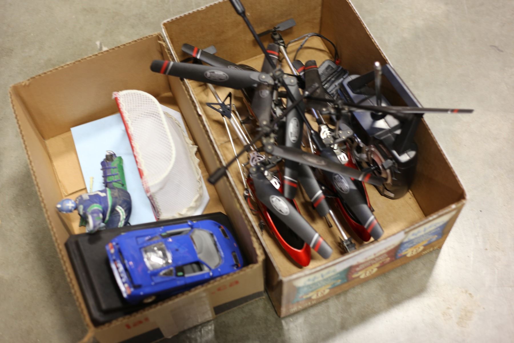BOX OF RC HELICOPTERS LUONGO FIGURE AND CAR