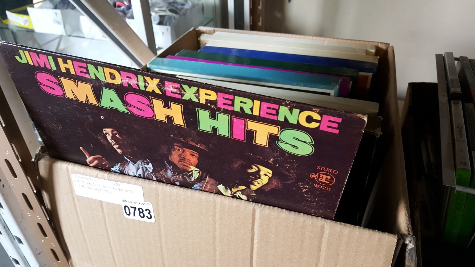 BOX OF RECORDS AND RECORD SETS - JIMI HENDRIX ETC.