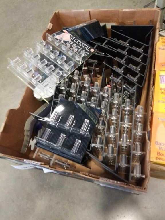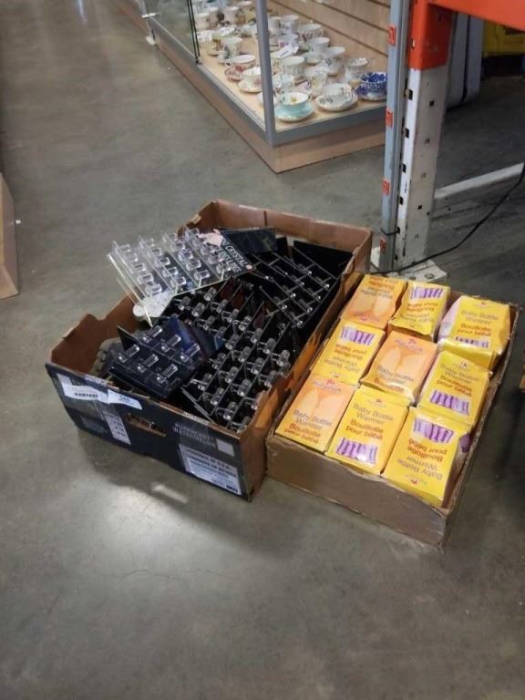 BOX OF RING DISPLAY STANDS AND HEATNCLICK BABY BOTTLE WARMERS