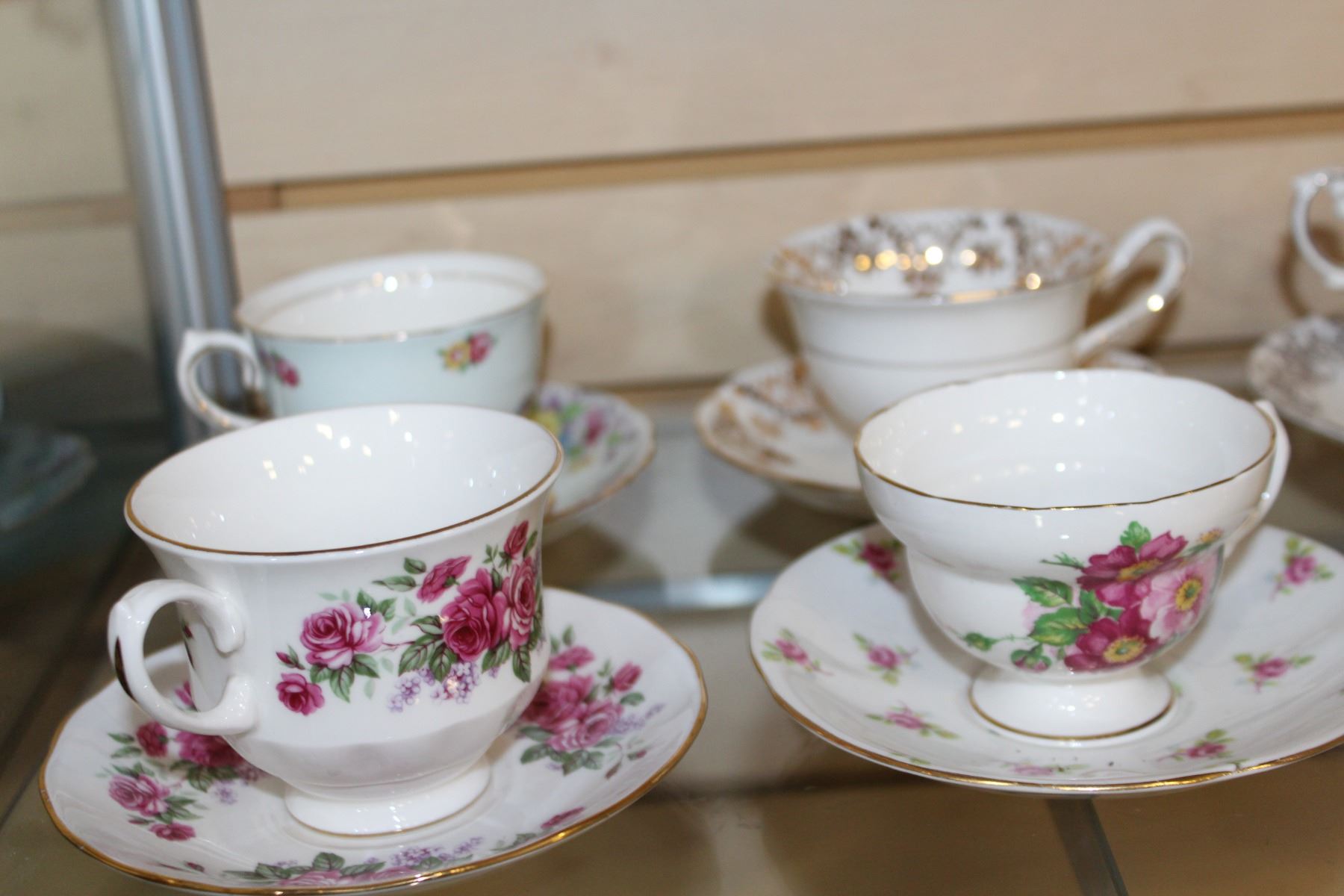 BOX OF ROYAL STAFFORD ROYAL ALBERT AND OTHER TEACUPS AND SAUCERS