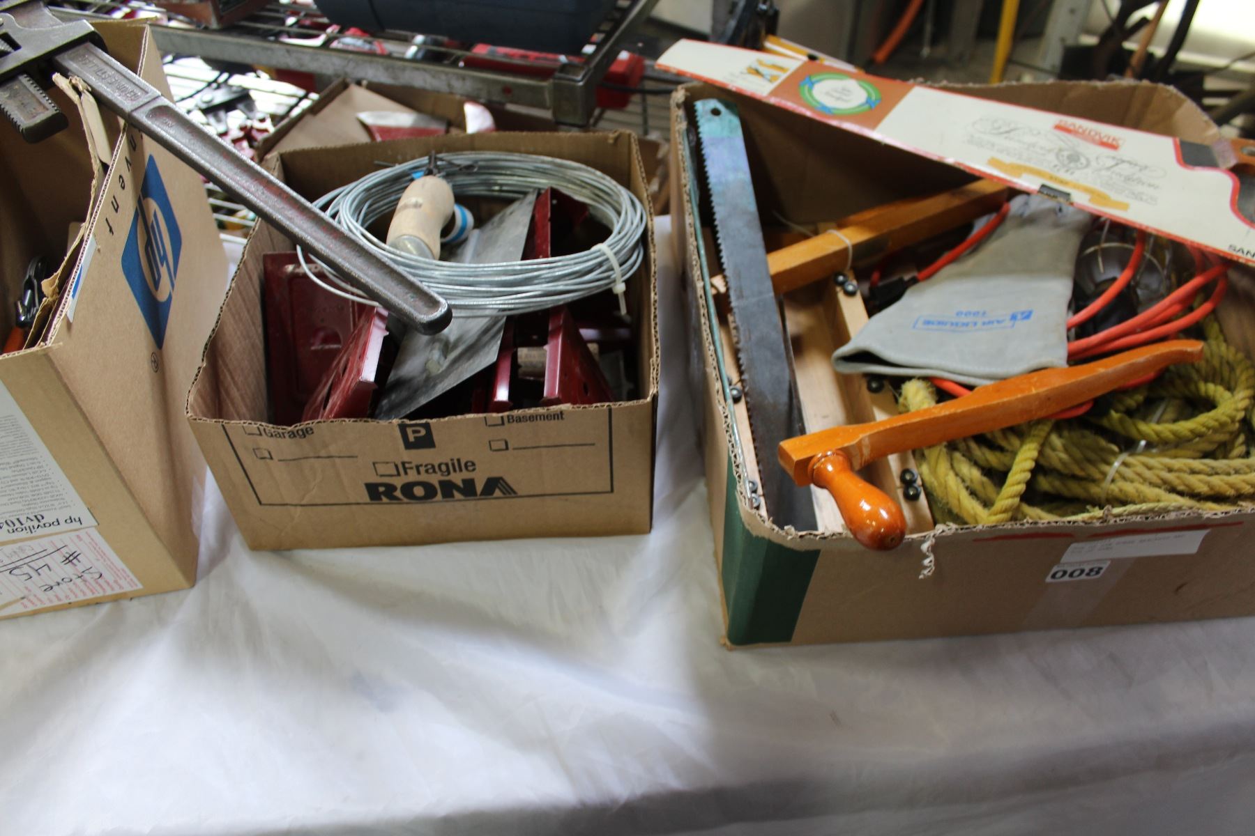 BOX OF SAW HORSE BRACKETS AND BOX OF SAWS