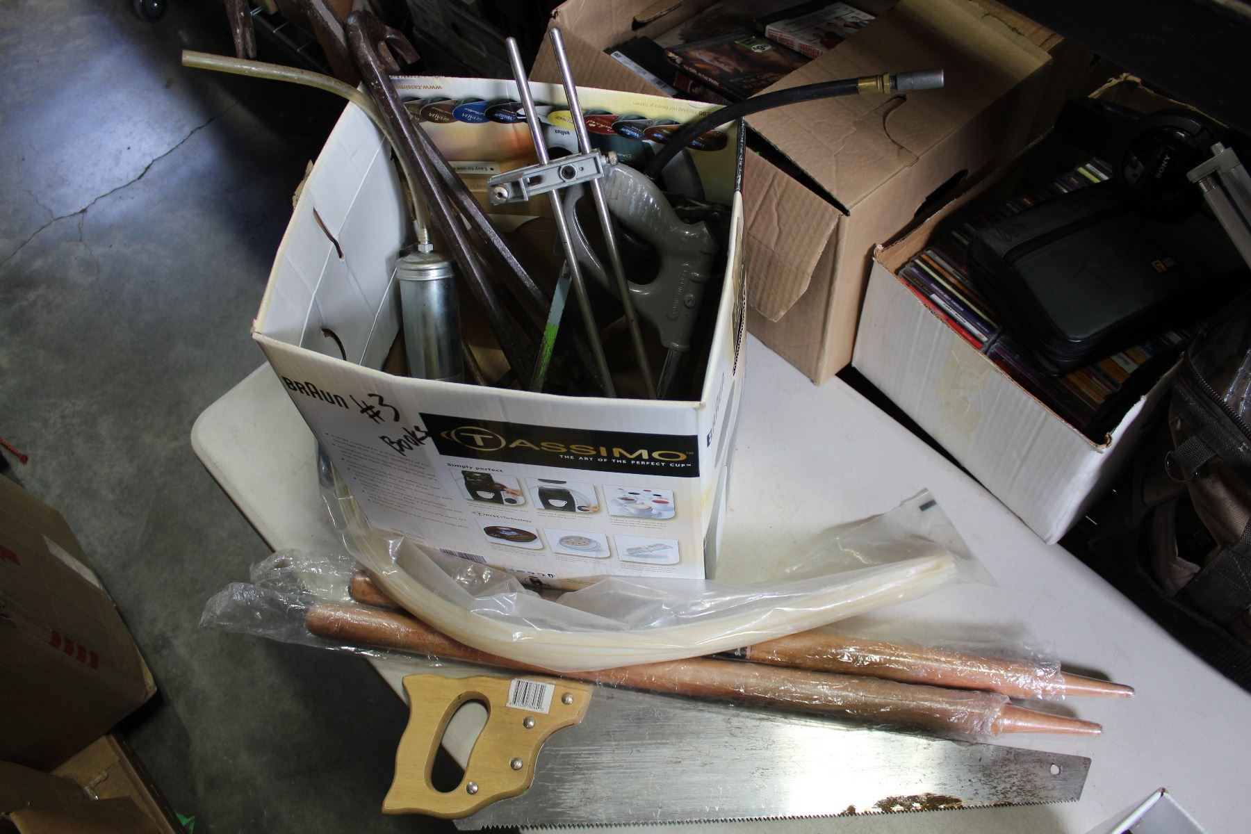 BOX OF SAWS AND POLES