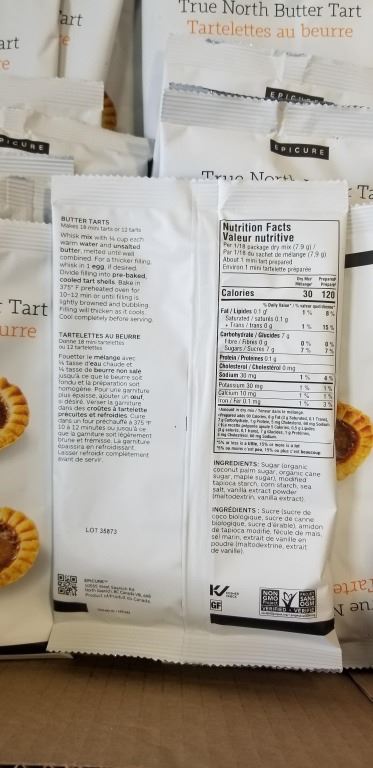 BOX OF SEALED EPICURE BUTTER TART MIX PACKETS