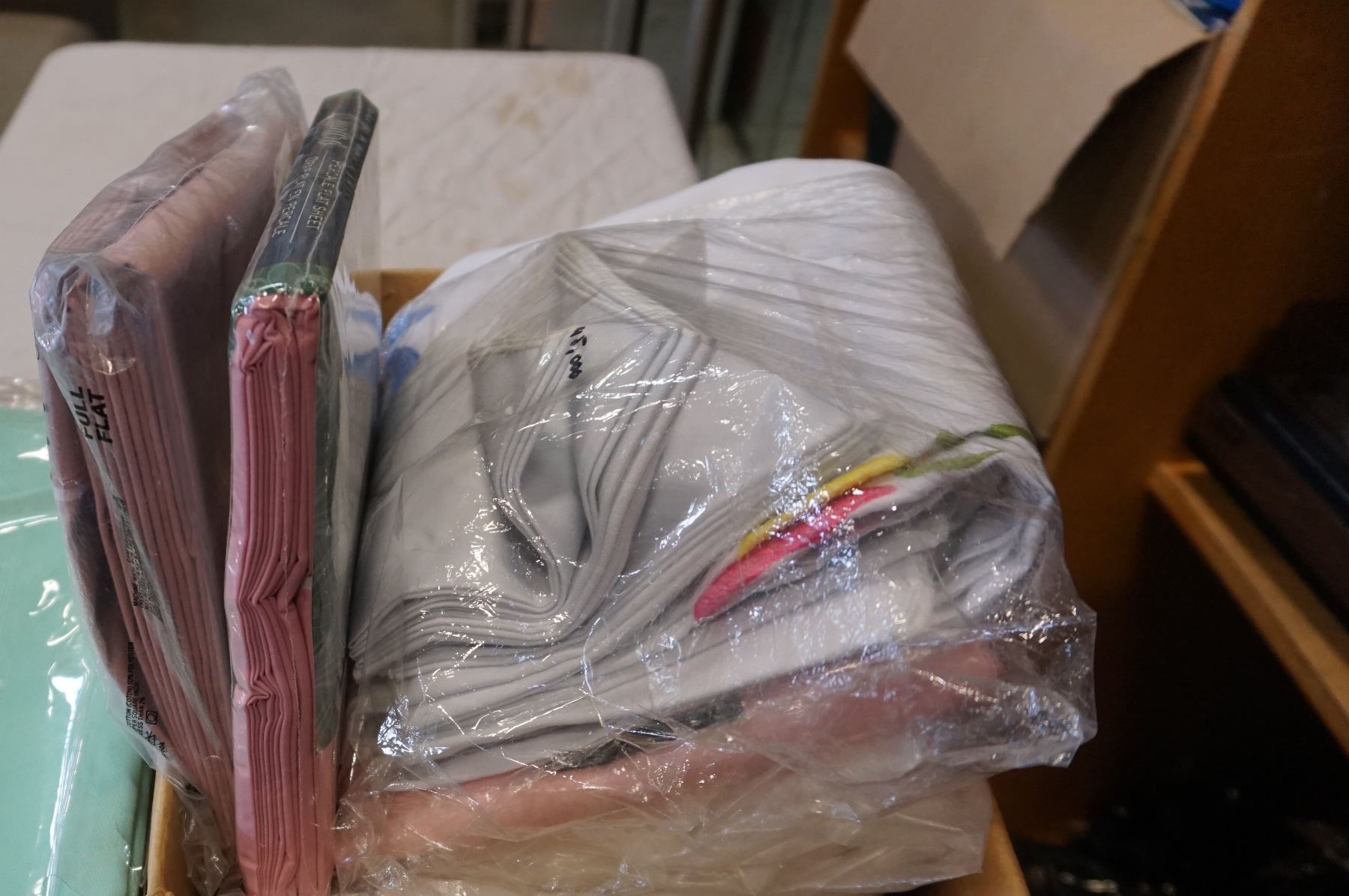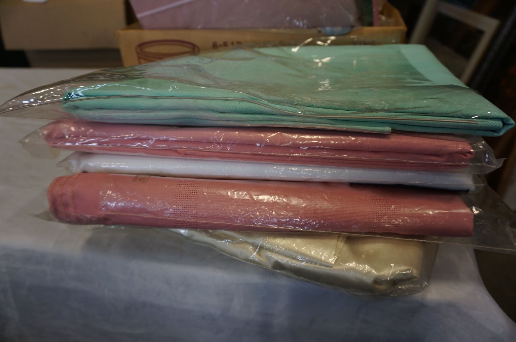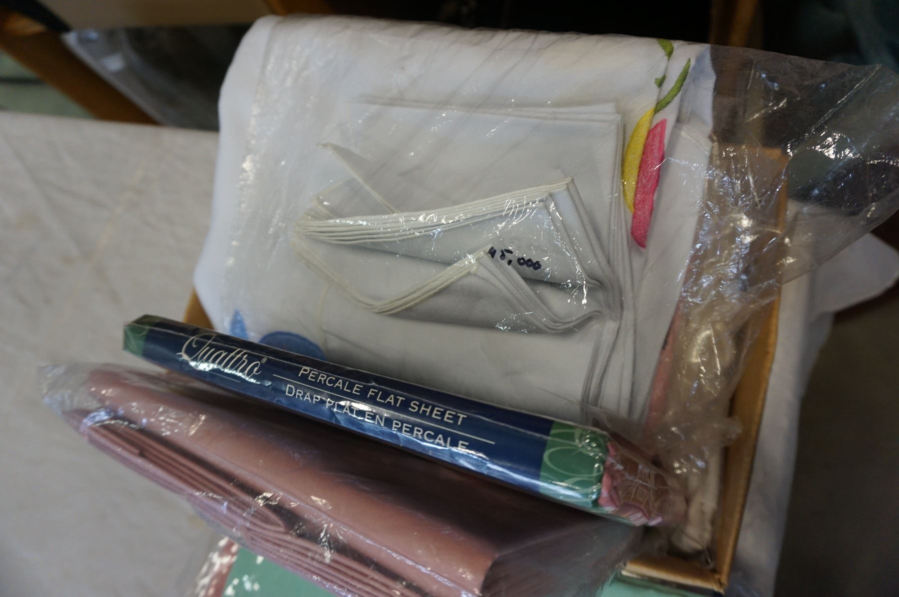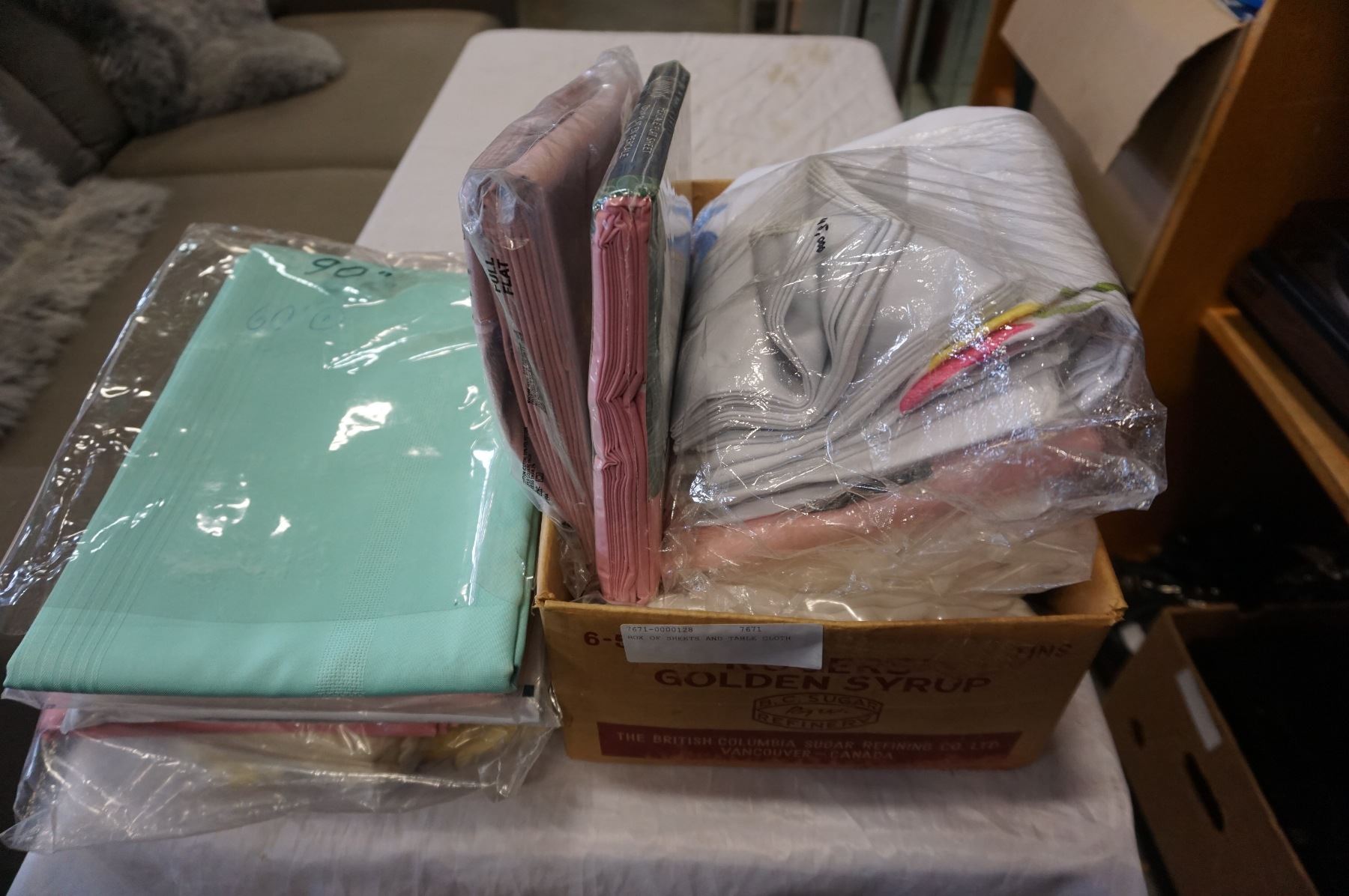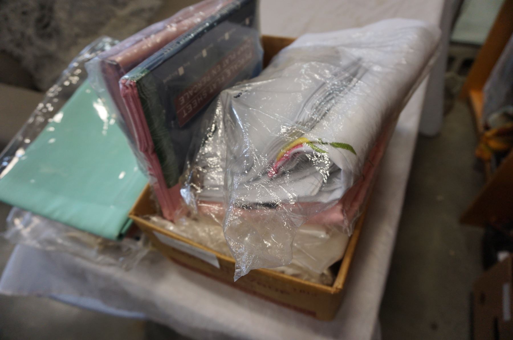 BOX OF SHEETS AND TABLE CLOTH