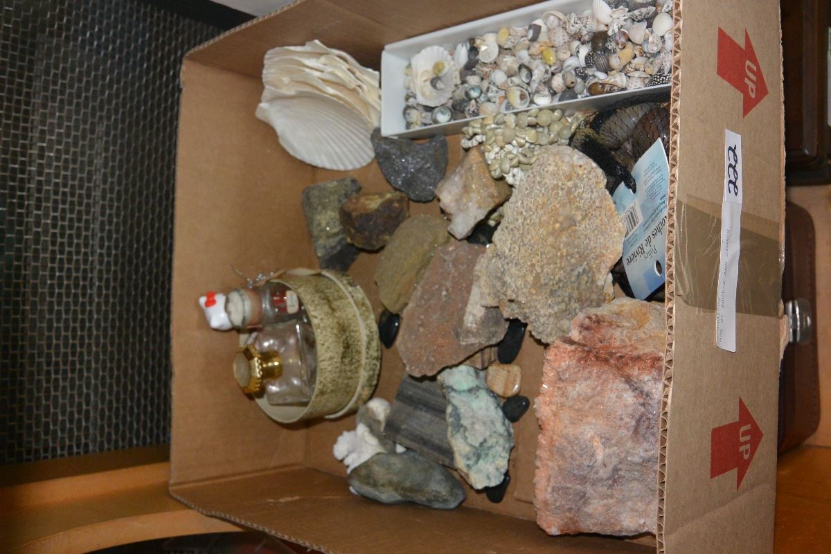 BOX OF SHELLS AND STONES
