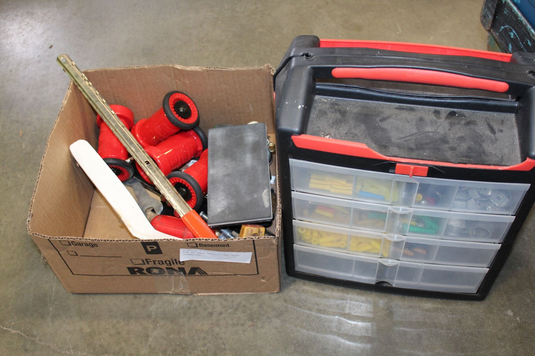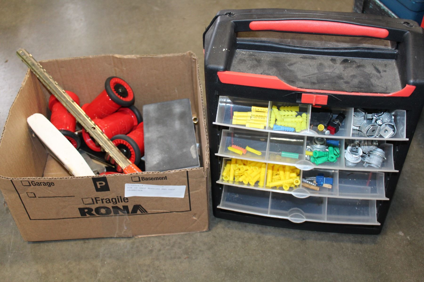 BOX OF SHOP NOZZLES AND SHOP ORGANIZER
