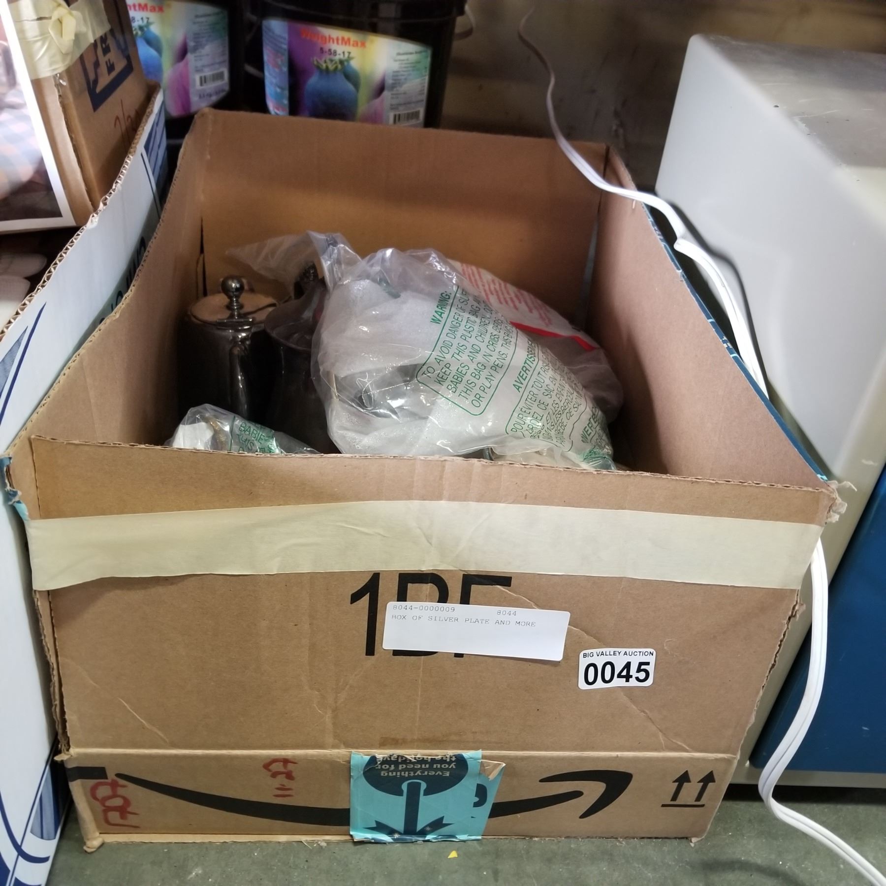 BOX OF SILVER PLATE AND MORE