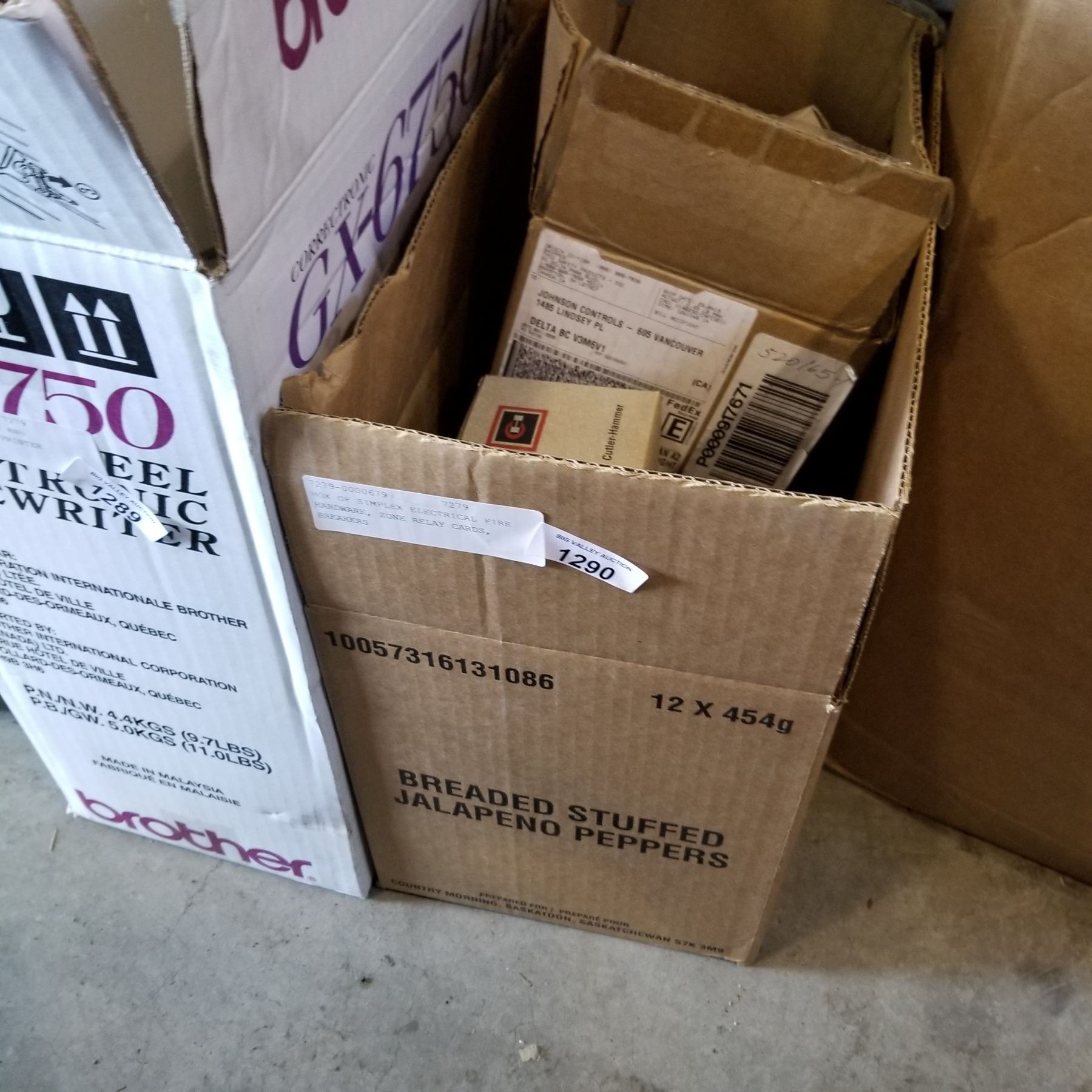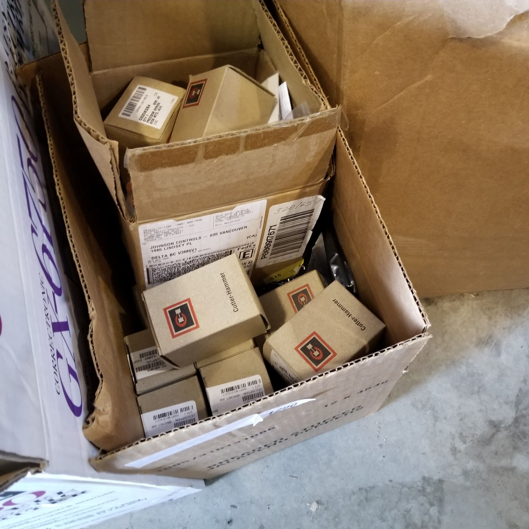 BOX OF SIMPLEX ELECTRICAL FIRE HARDWARE, ZONE RELAY CARDS, BREAKERS