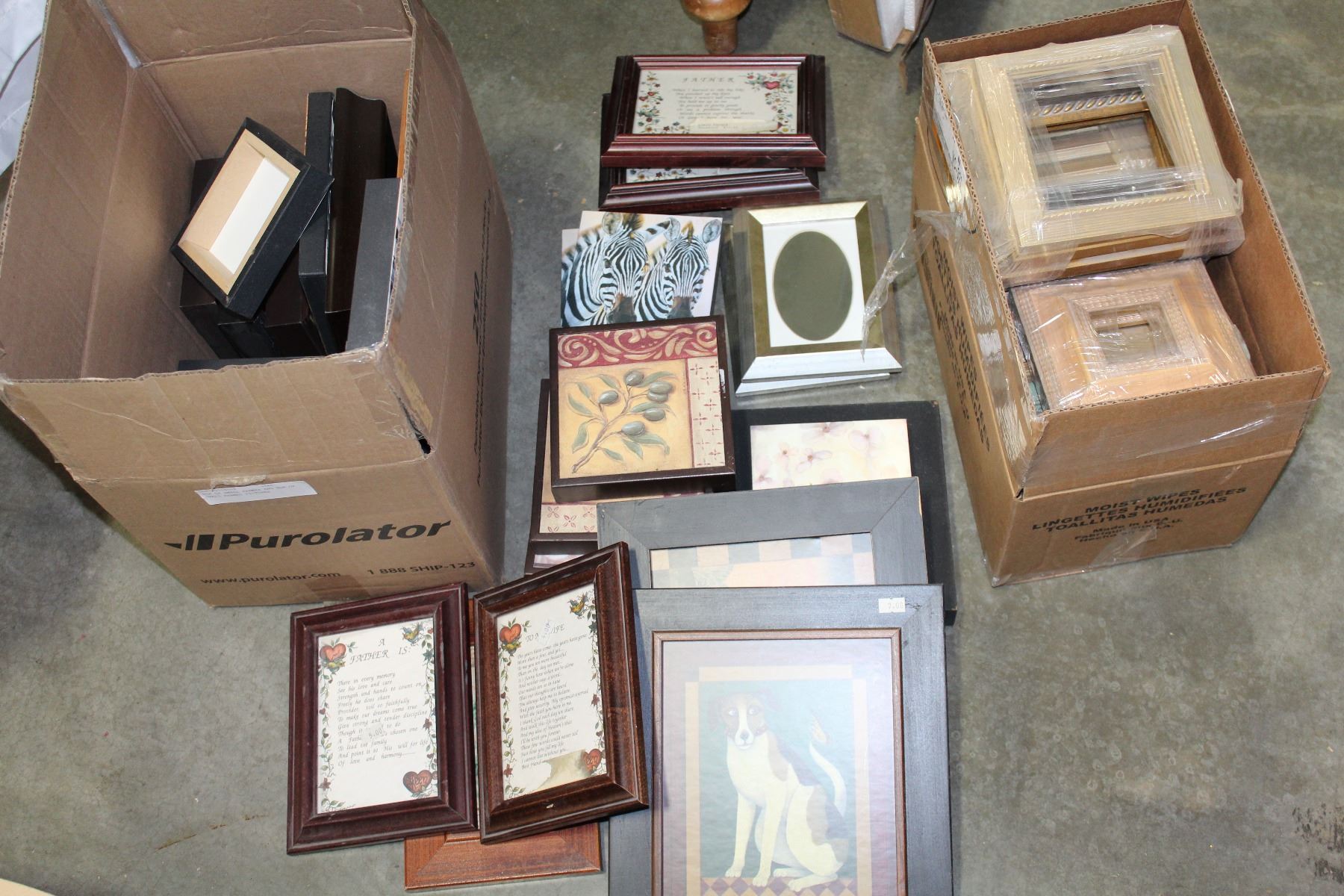 BOX OF SMALL FRAMES AND BOX OF SMALL FRAMED PICTURES