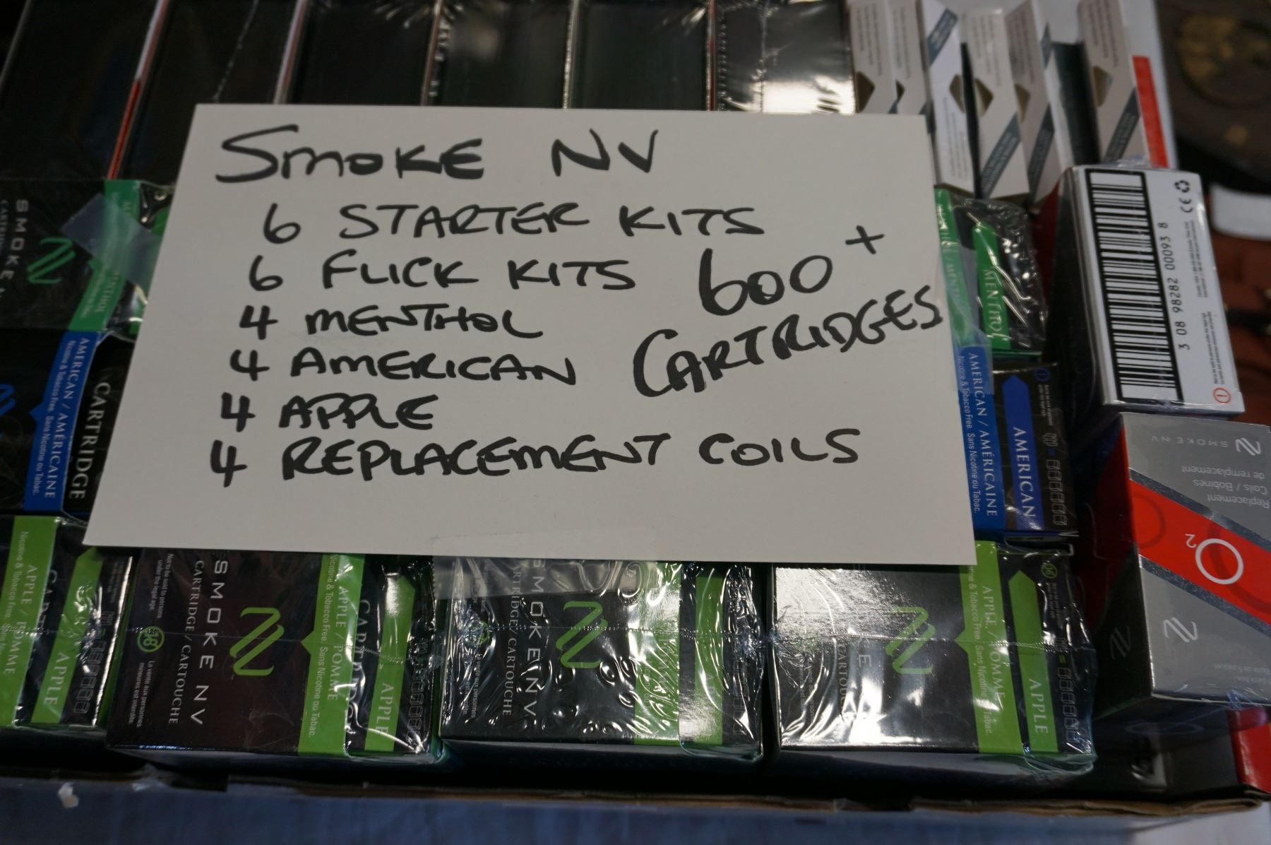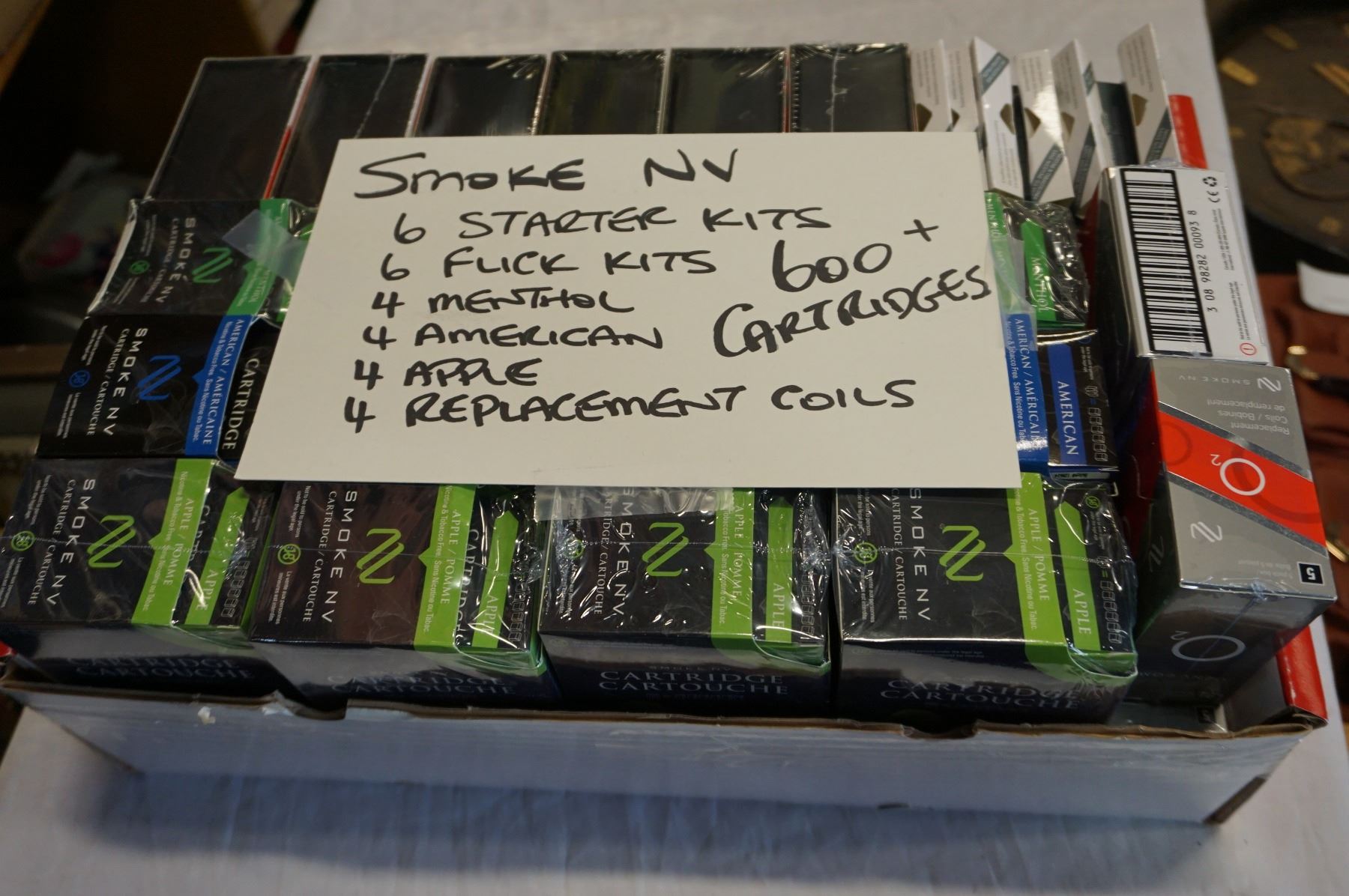 BOX OF SMOKE NV KITS AND CARTRIDGES