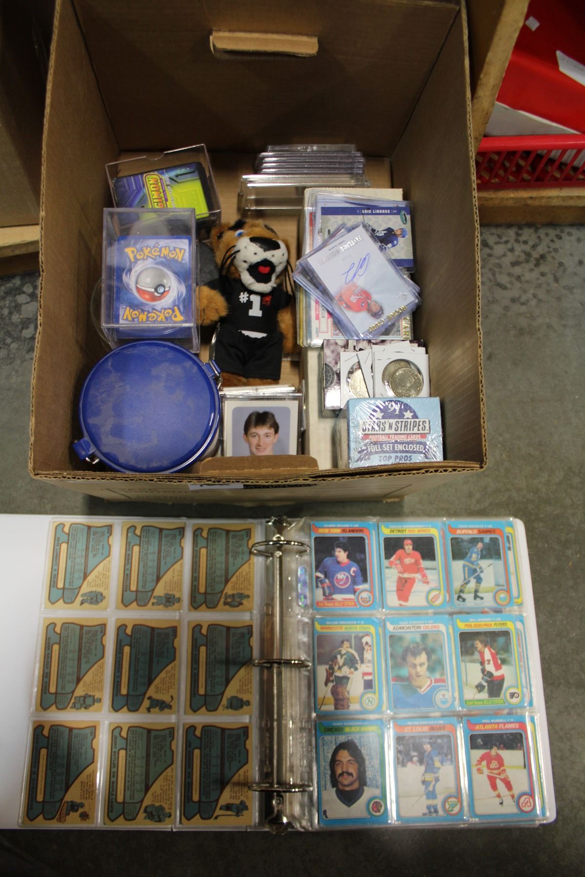 BOX OF SPORTS CARDS AND COLLECTIBLES
