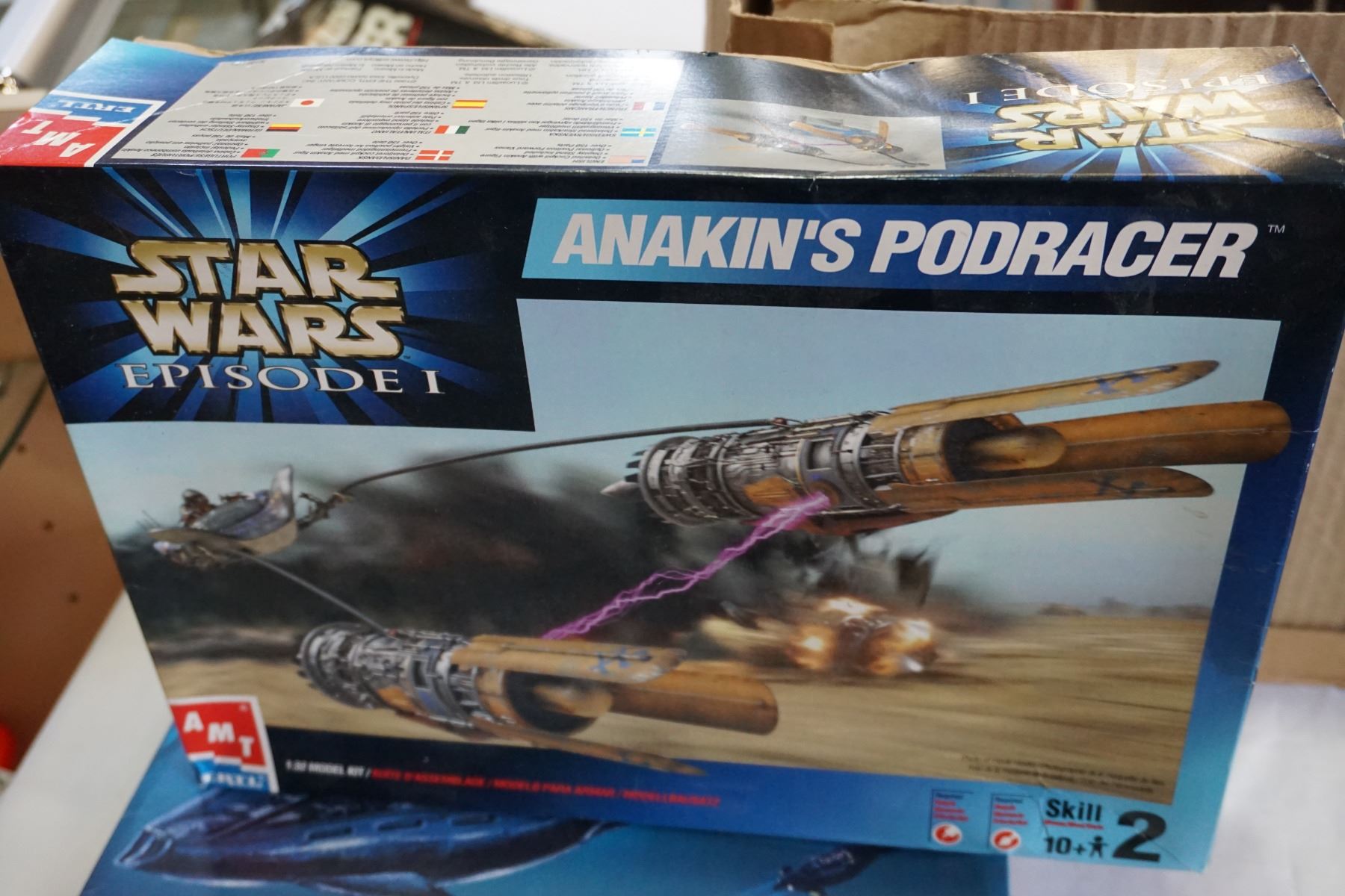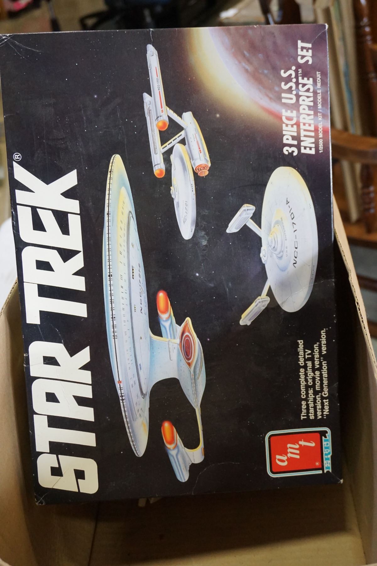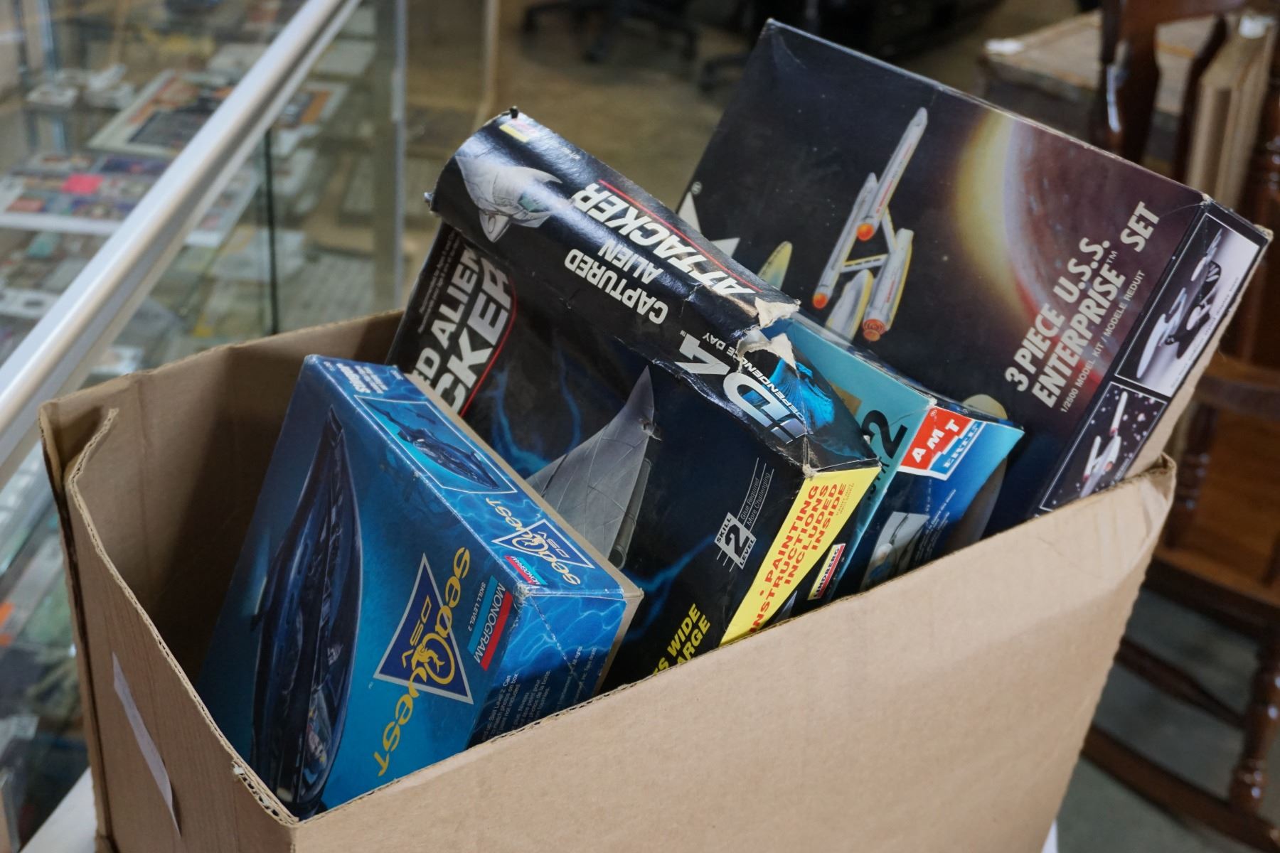 BOX OF STAR WARS, STAR TREK, AND OTHER MODEL SPACESHIPS AND SUBMARINE